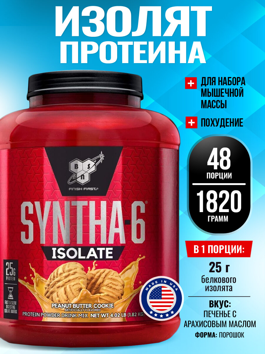 BSN Syntha-6 Isolate 1820 гр. 4lb (BSN) Печенье с арахисовым маслом