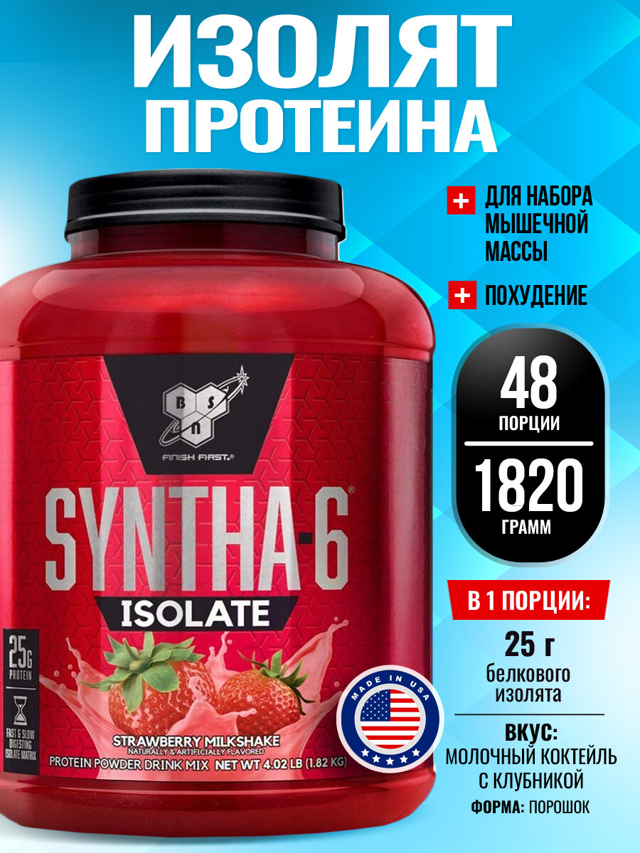 BSN Syntha-6 Isolate, 1820 г, вкус: клубника