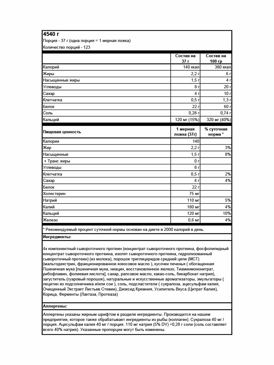 | Плюсы: | Приятный вкус. Хорошо растворяется. Большое количество белка в порции! |