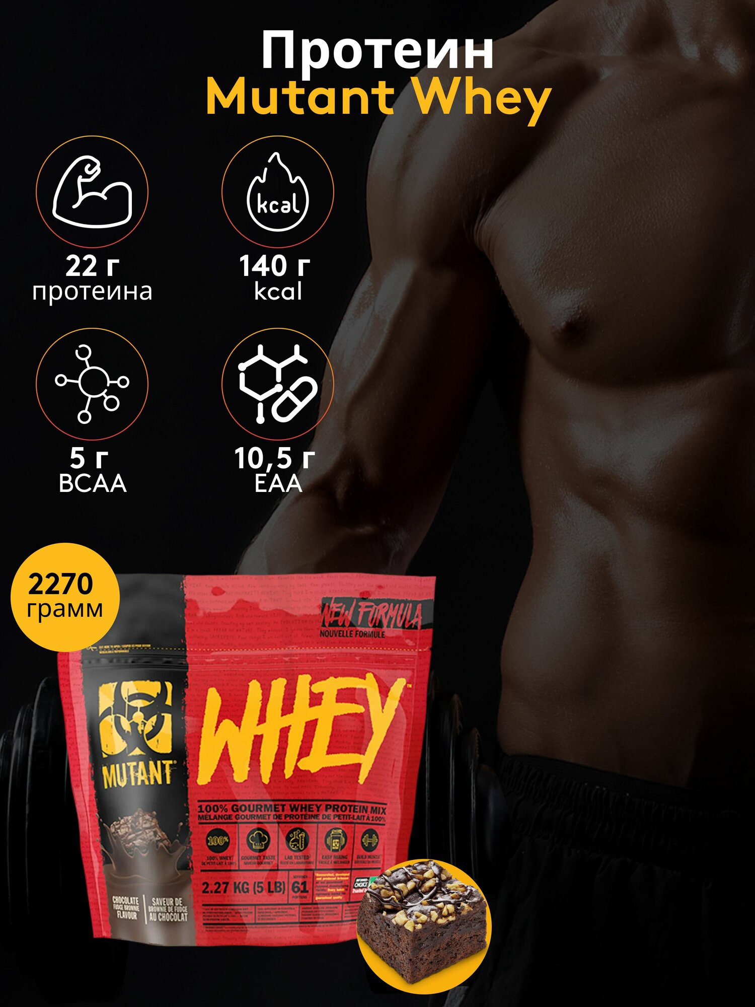 Протеин Mutant Whey 2270 г, Брауни с шоколадной помадкой