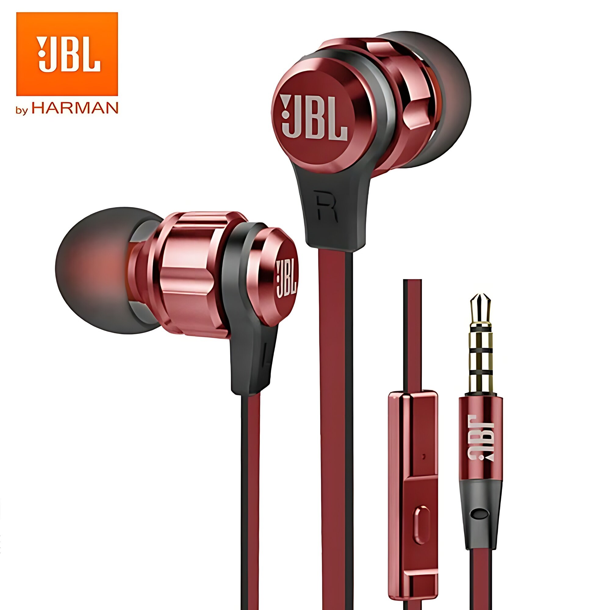 Проводные внутриканальные наушники JBL T180A, 3.5 мм с микрофоном, Bass, красные