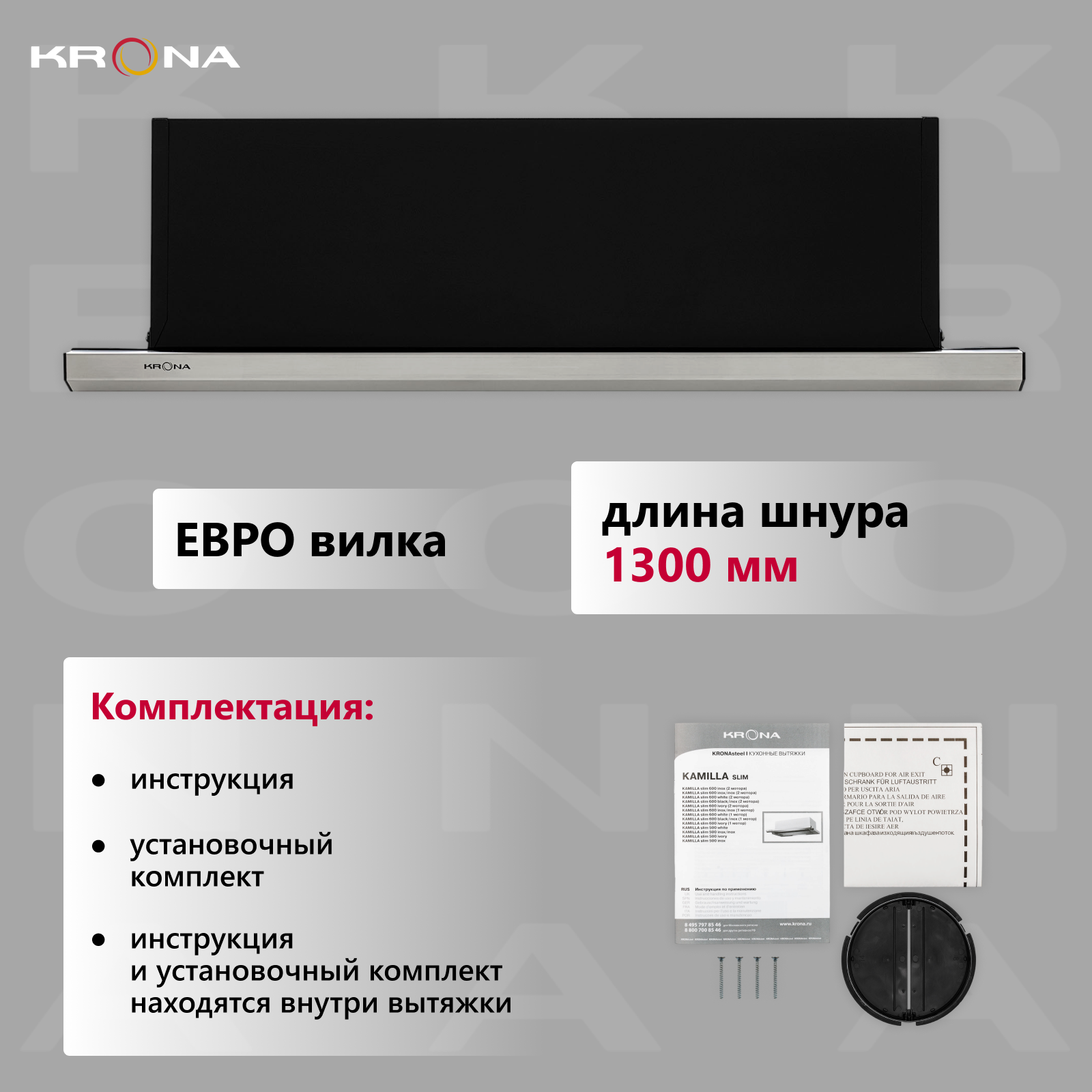 Купить Встраиваемая вытяжка Krona Kamilla 600 slim, управление кнопочное, 2 мотора, черный/нержавеющая сталь [00020960]
