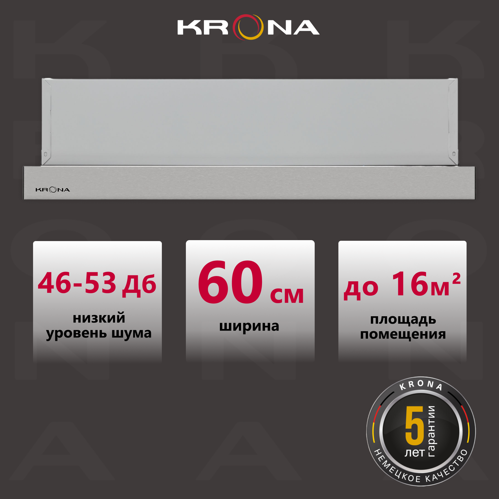Кухонная вытяжка встраиваемая KRONA Kamilla slim 600 inox/inox (2 мотора)