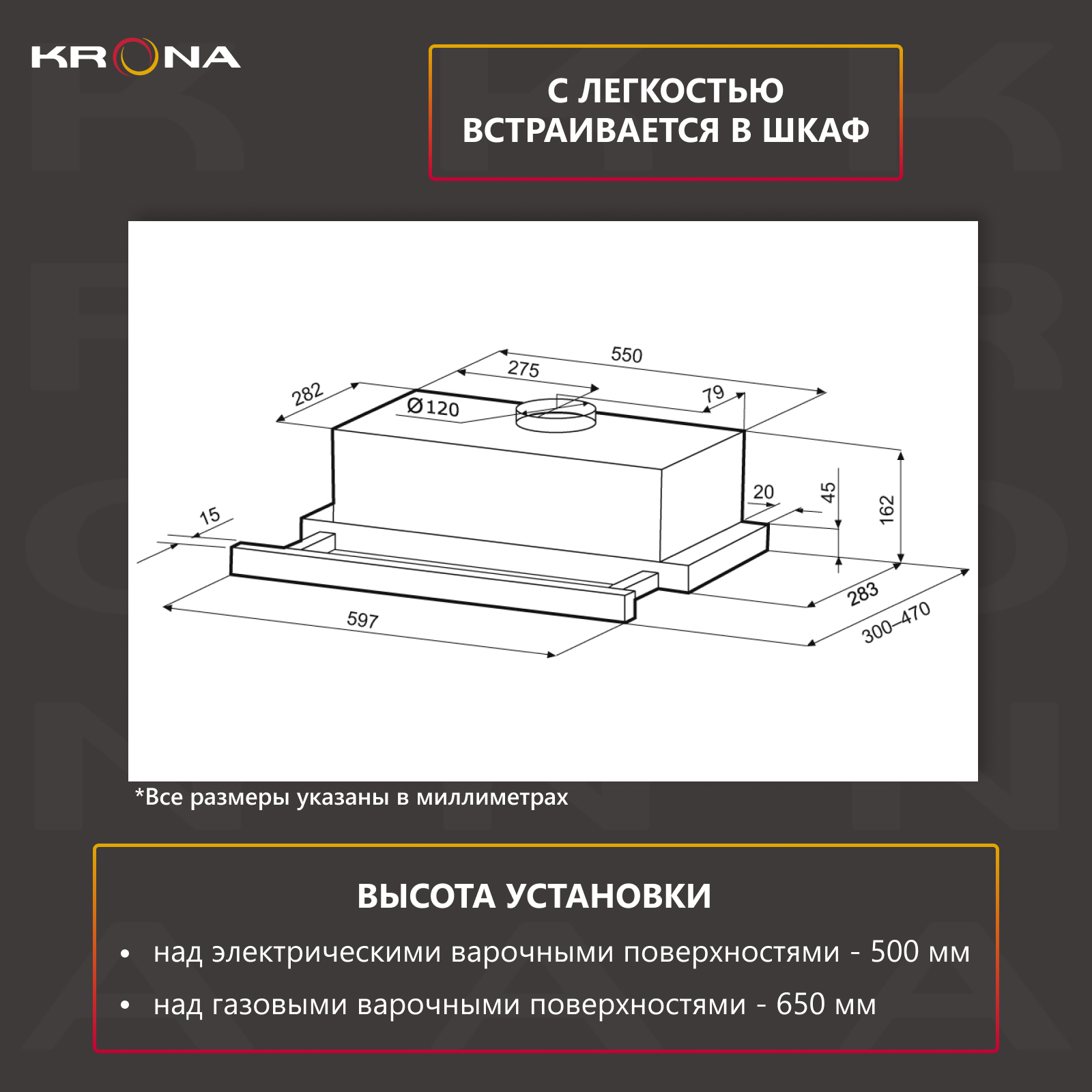 встраиваемая вытяжка Kronasteel Krona Kamilla slim 600 WH (2 мотора)