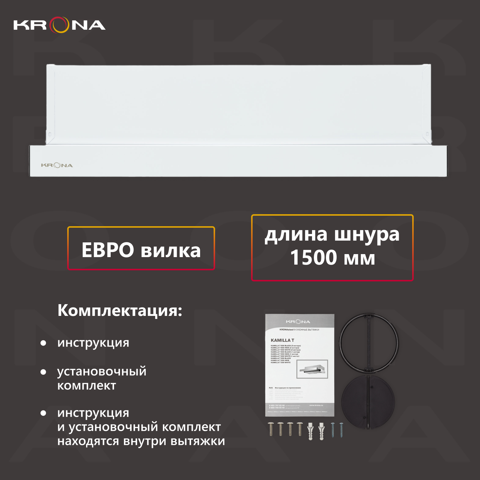 Вытяжка Krona Kamilla 600 slim нержавеющая сталь/белый (2 а)