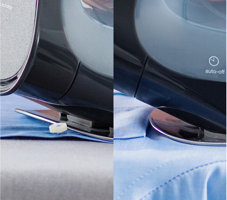 | Минусы: | Иногда костюмную ткань как-то не очень хорошо распознаёт. Можно приподнять утюг и гладить паром. |