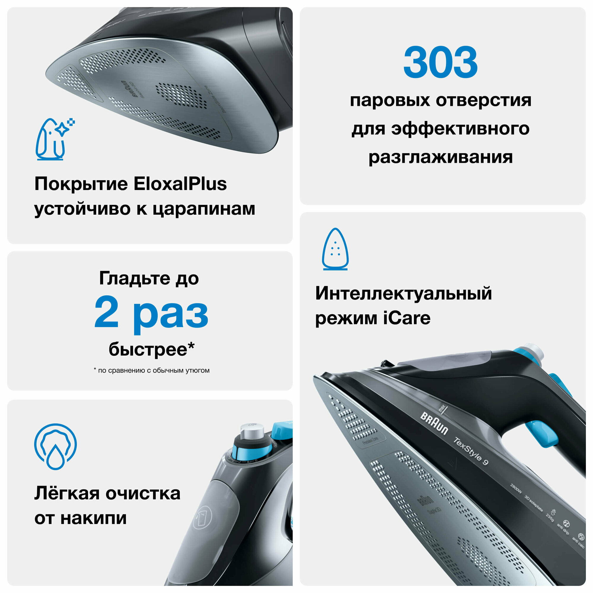 Утюг Braun TexStyle 9 SI9188EBK черный/серый/голубой