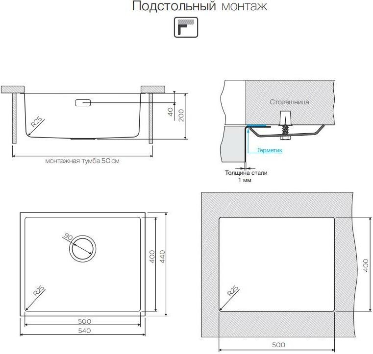 Врезная кухонная мойка LEX Maury 510