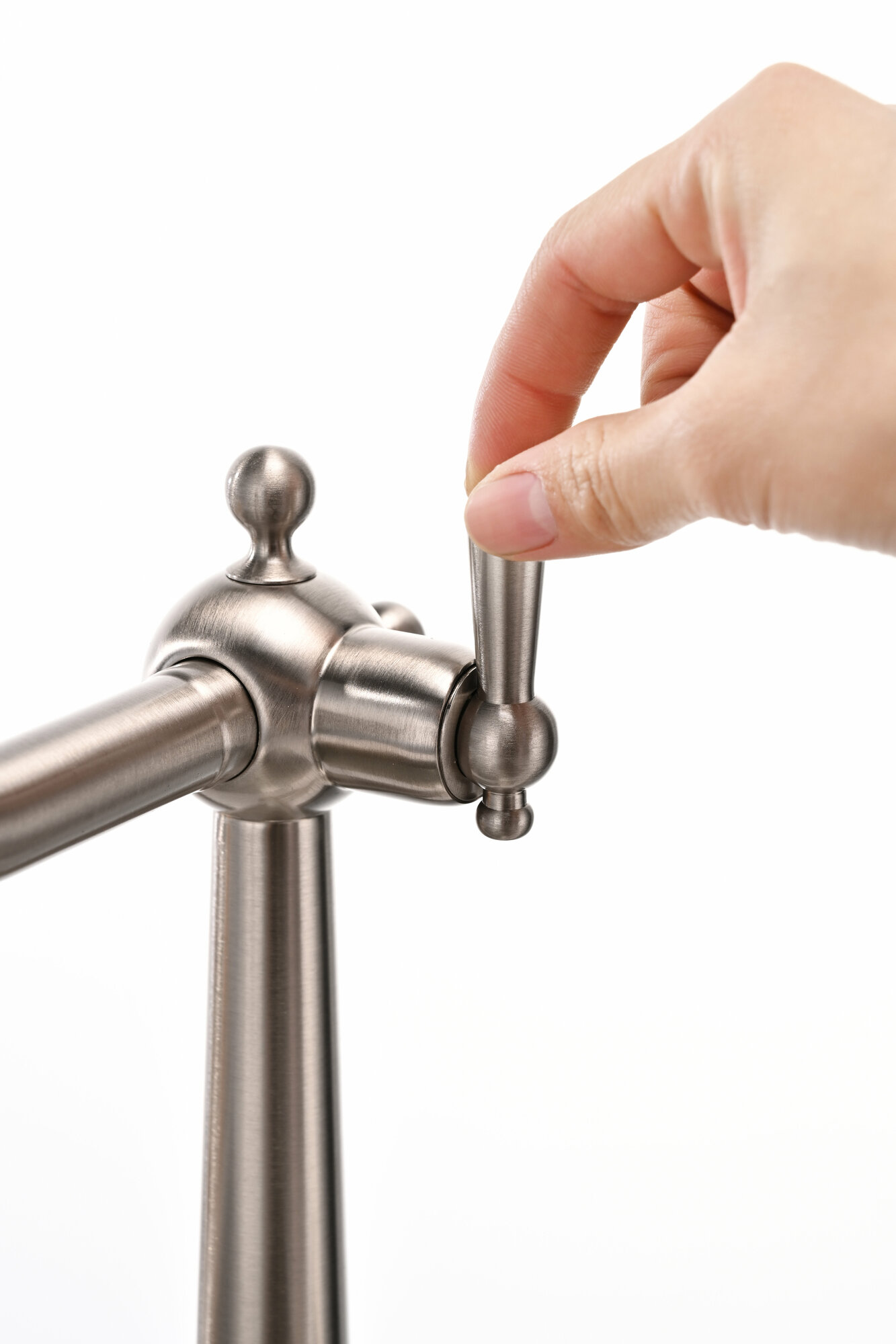 Купить Смеситель для кухни с подключением к фильтру питьевой воды Paulmark RETRO, высокий поворотный излив ретро дизайна из латуни, двурычажный, для мойки / столешницы, никель, Re213226-NI