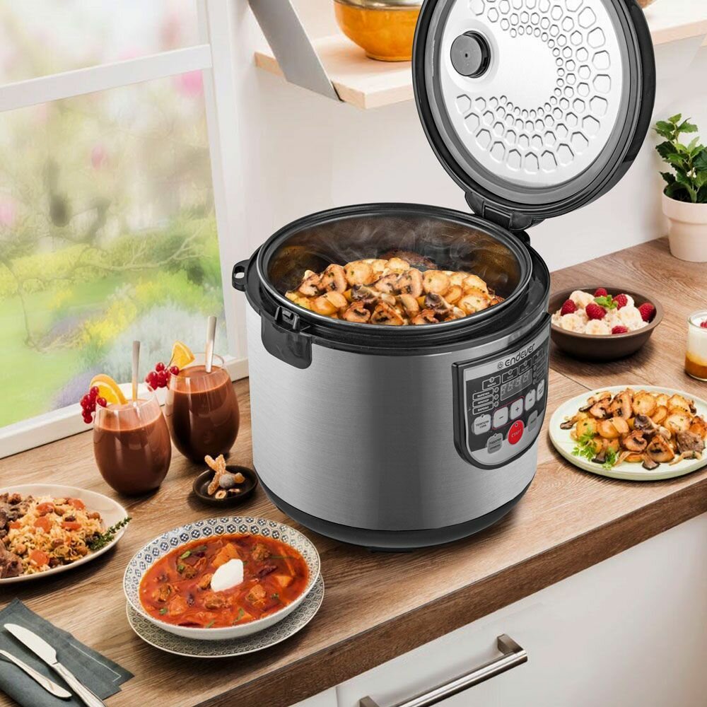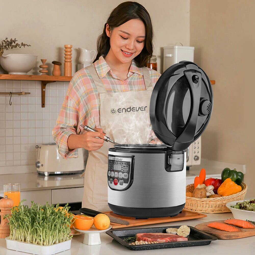 Мультиварка Endever Vita 80 мощностью 880 Вт, с антипригарной чашей 5л, 10 авторежимов работы, таймер до 24 часов, автоподогрев, мастер-повар, стальной корпус, регулировка времени/темпа приготовления
