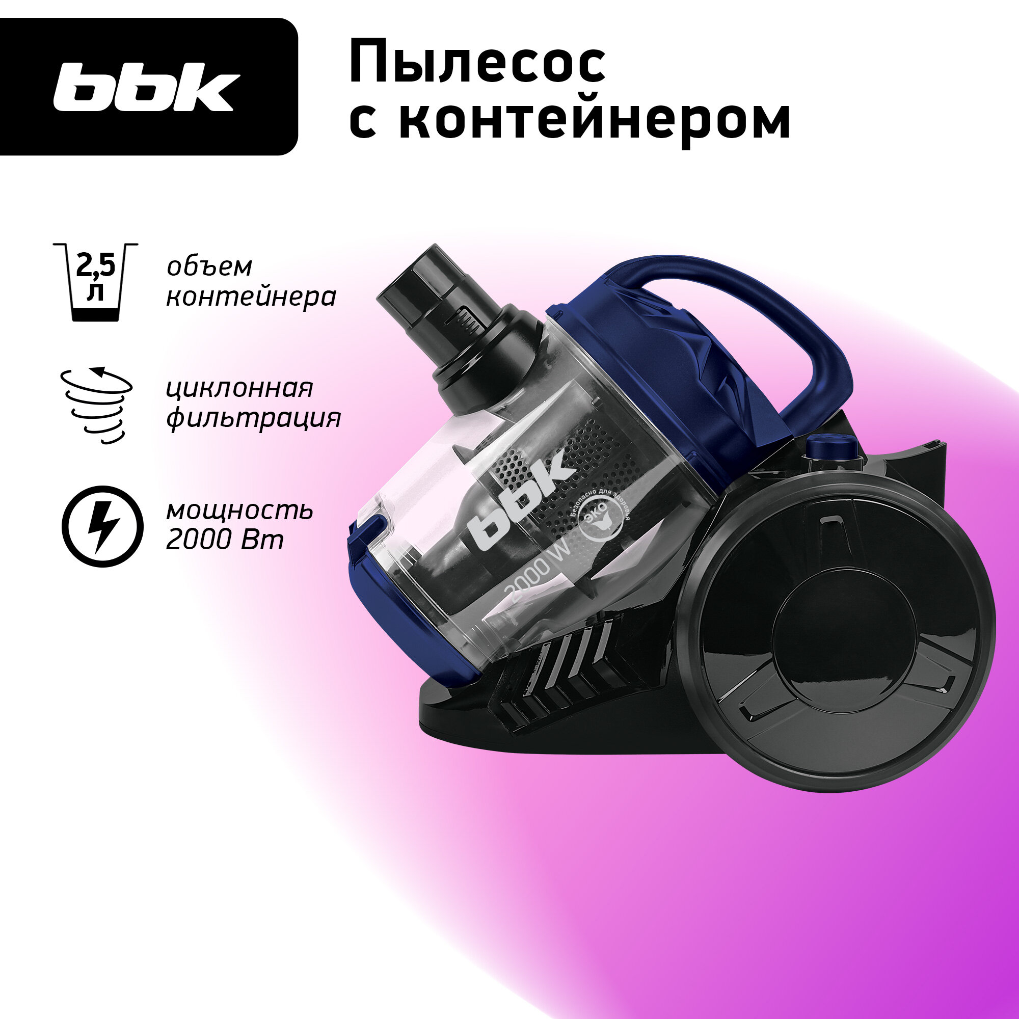 Пылесос BBK BV1503, циклонный, сухой, 2000Вт, фильтр нера