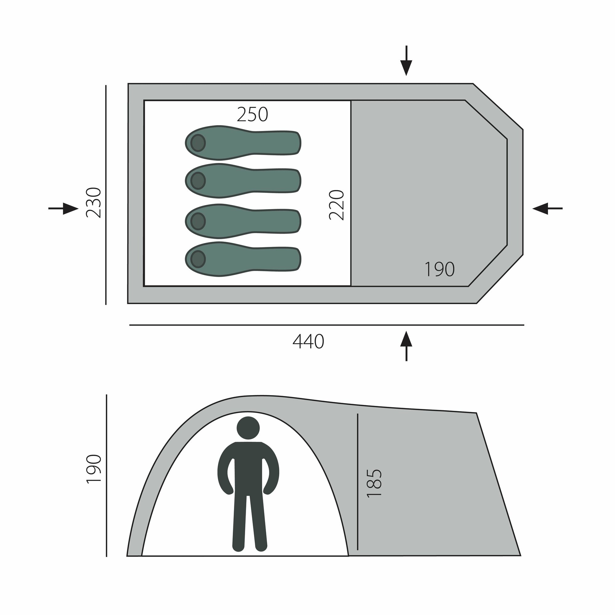 | Длина внешней палатки | 440 см |