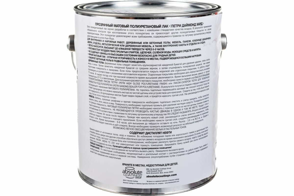 Лак Petri Diamond Hard полиуретановый бесцветный, матовая, 3.79 л