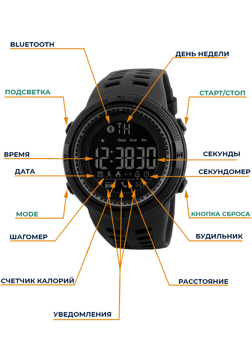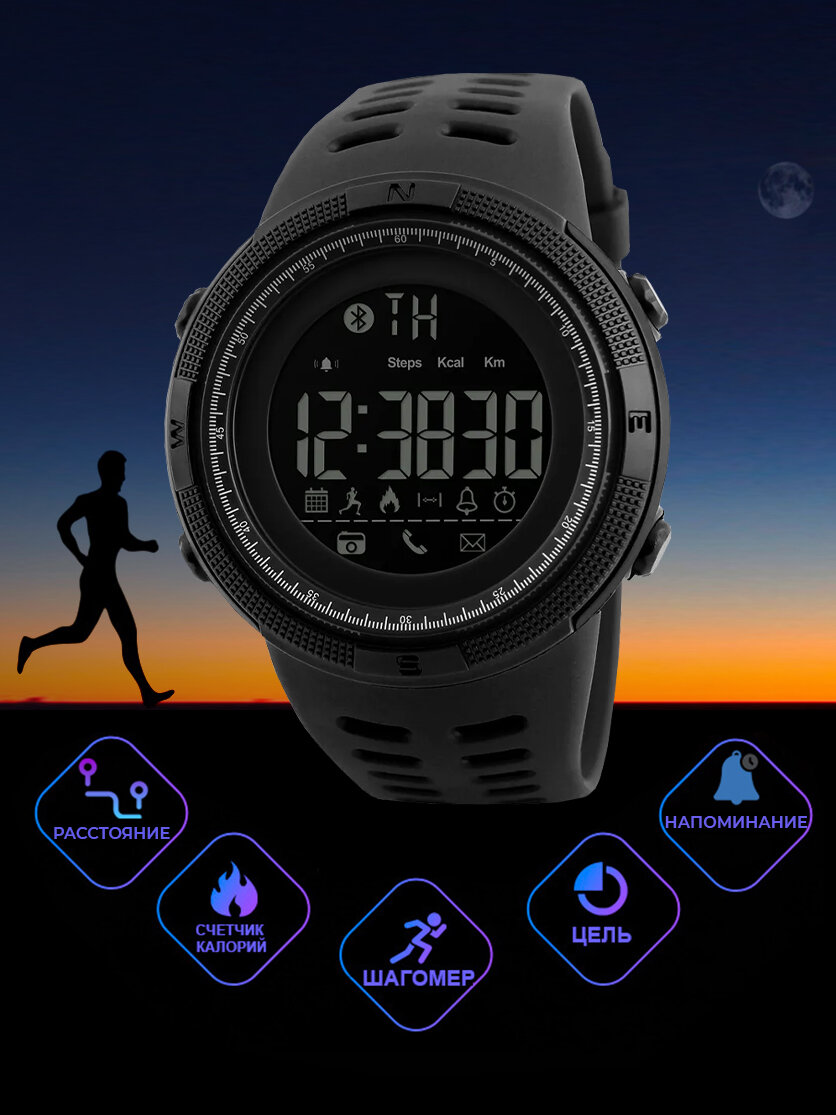 Часы наручные мужские электронные спортивные SKMEI водонепроницаемые, с шагомером и счетчиком калорий, черные интересное: