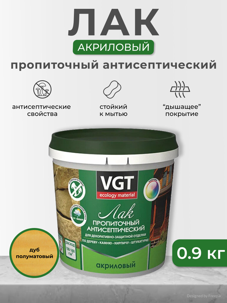 Лак Пропиточный для Дерева VGT 0.9кг Калужница Акриловый для Внутренних и Наружных Работ без Запаха / ВГТ.*