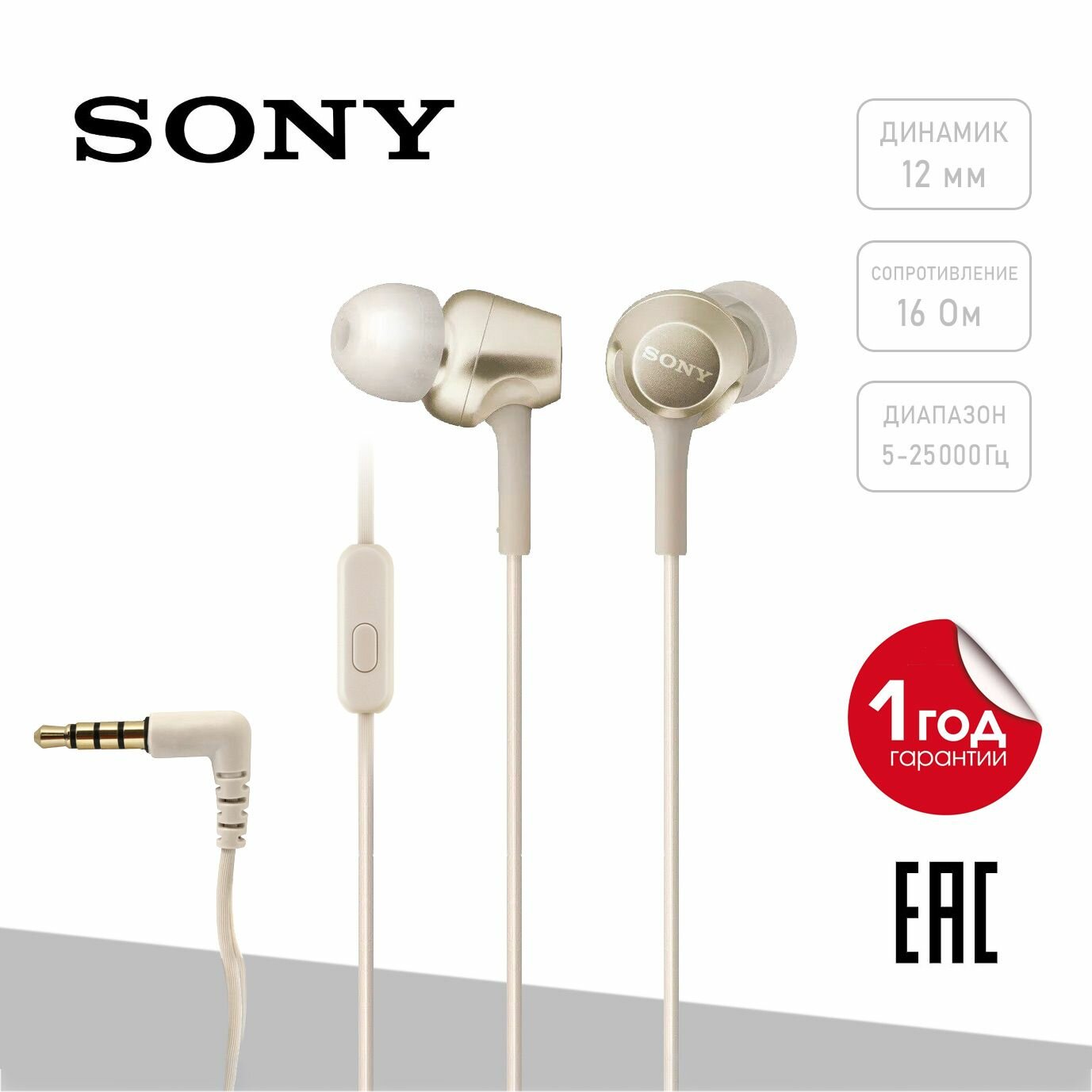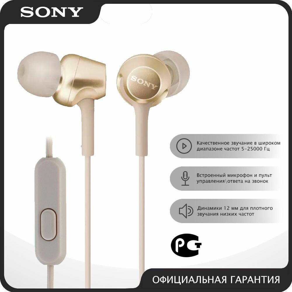 Купить MDR-EX255APN наушники Sony с микрофоном золотистые