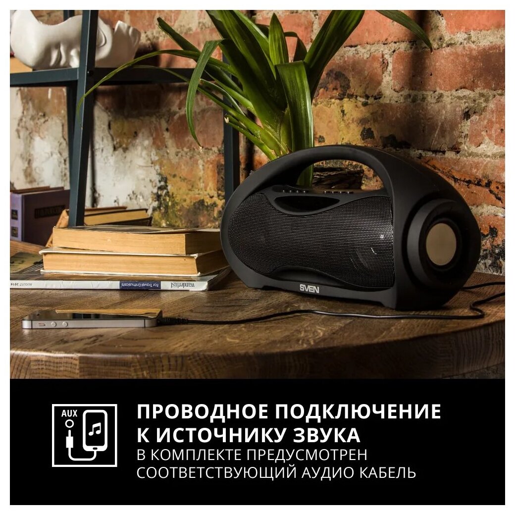 Портативная акустика Sven PS-420 SV-015220 12 Вт(2x6), встроенный аккумулятор, FM-тюнер, Bluetooth, USB, microSD, черный