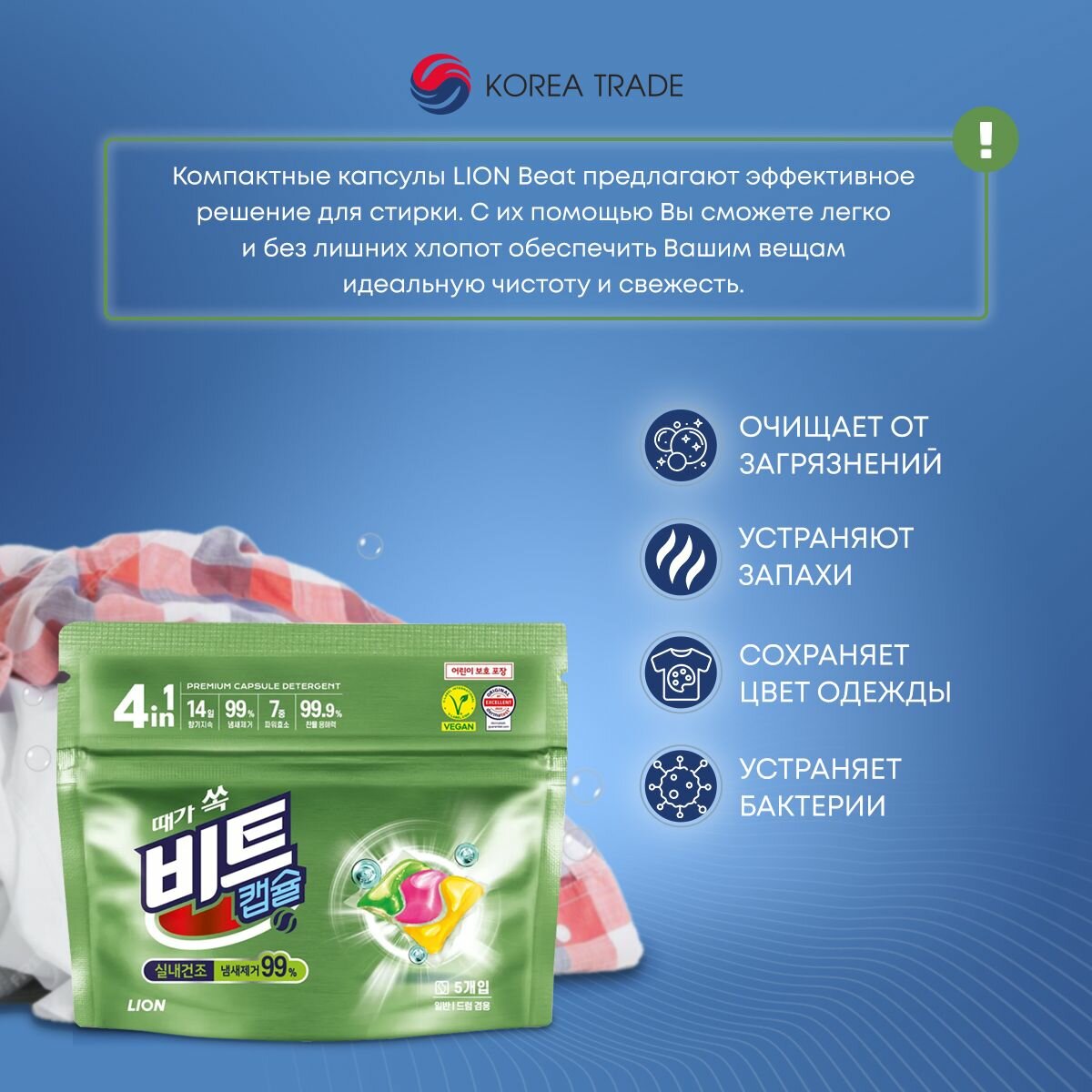 Ниже Вы можете прочитать отзывы на LION Beat Capsule Detergent (indoor) Средство для стирки жидкое в капсулах 5шт, ознакомится с подробными характеристиками, посмотреть интересные обзоры и фотографии на LION Beat Capsule Detergent (indoor) Средство для стирки жидкое в капсулах 5шт.