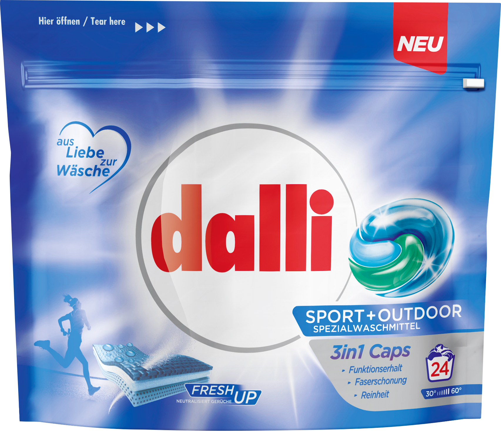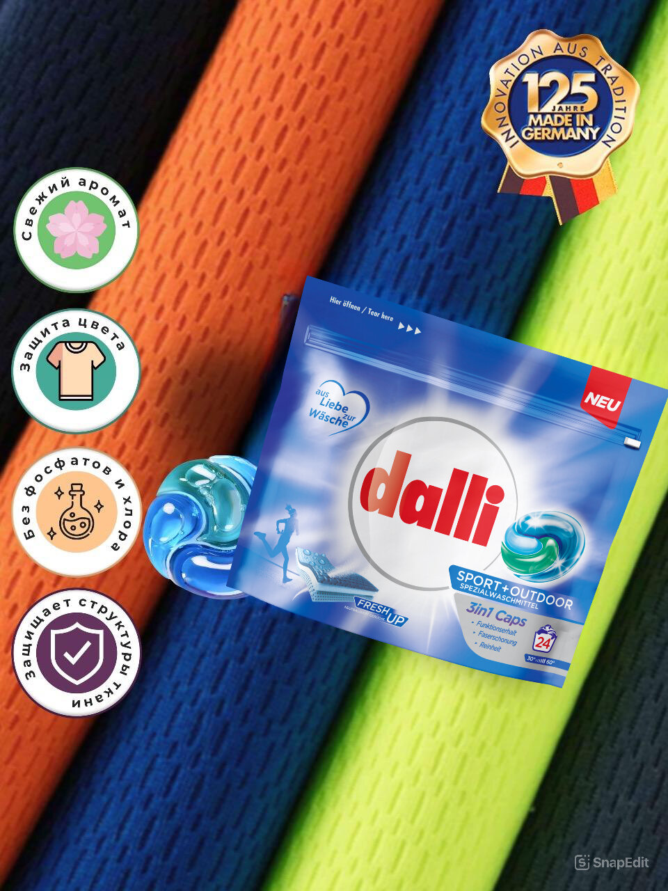 Dalli 3 in 1 Sport + Outdoor Caps Капсулы для стирки спортивной и туристической одежды 24 шт