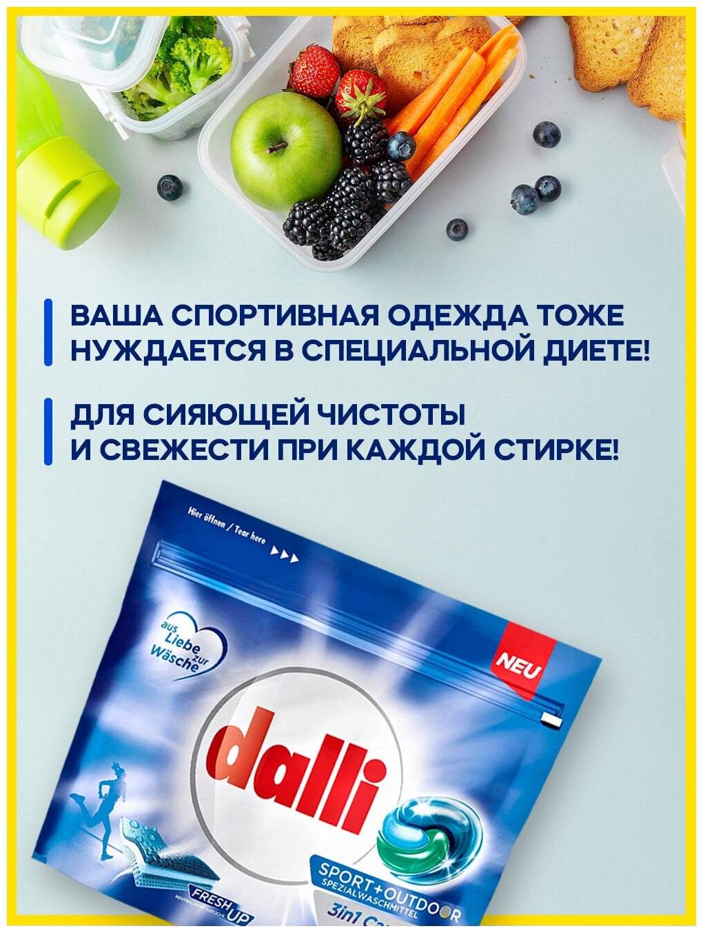 Купить Dalli 3 in 1 Sport + Outdoor Caps Капсулы для стирки спортивной и туристической одежды 24 шт