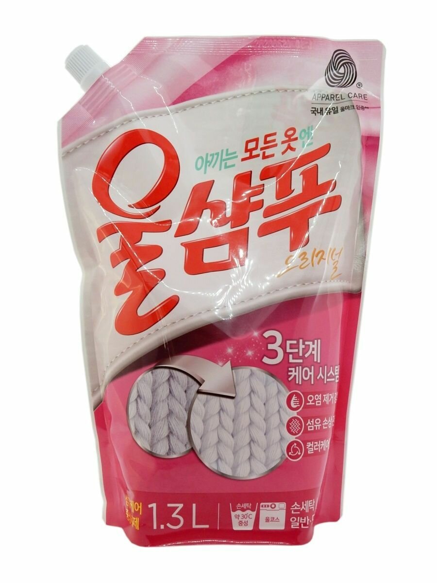 Aekyung Wool Shampoo Original Жидкое средство для стирки деликатных тканей Вул шампу 1.3 л в мягкой упаковке