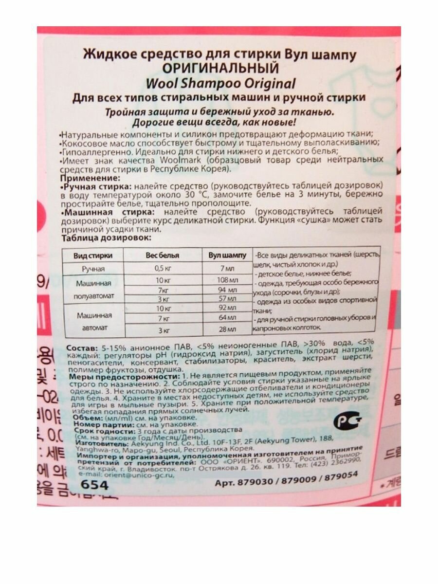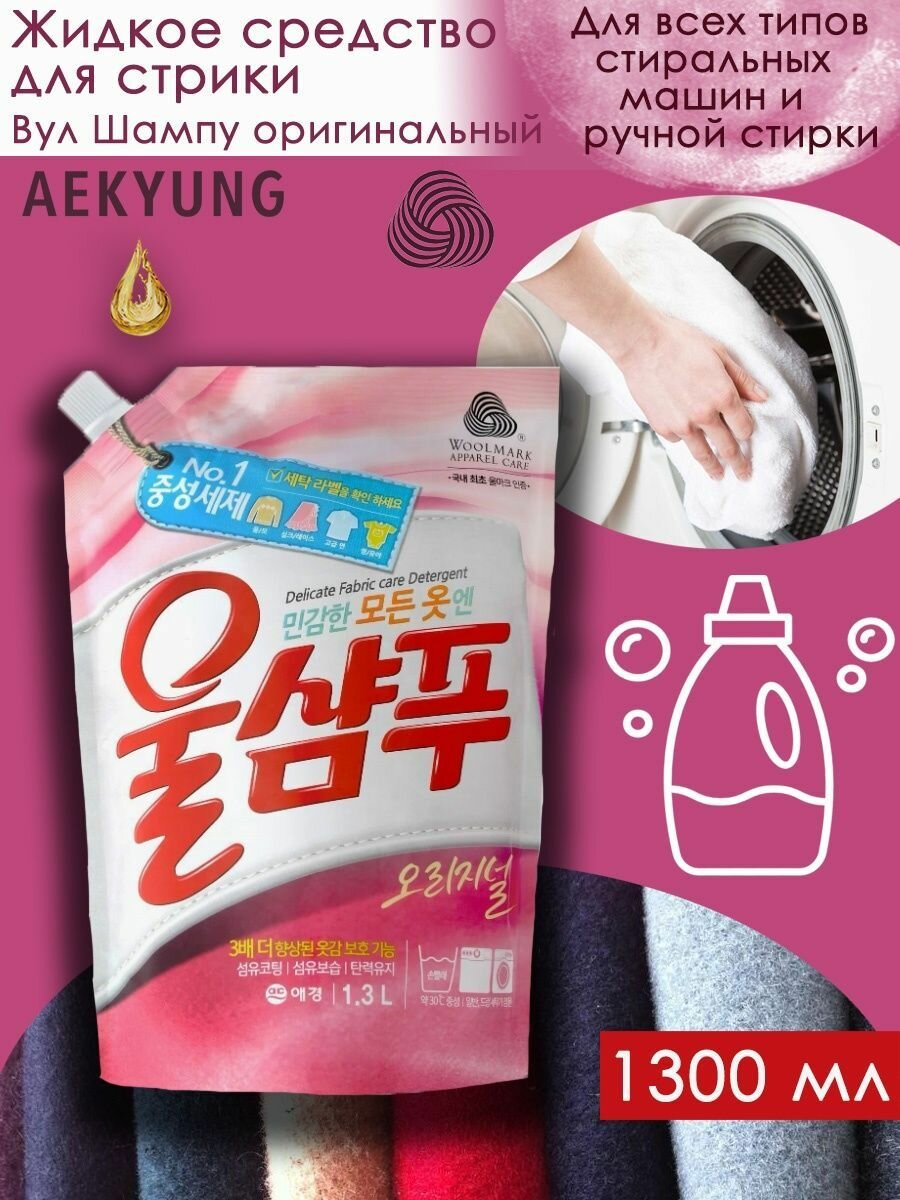 Aekyung Wool Shampoo Original Жидкое средство для стирки деликатных тканей Вул шампу 1 л