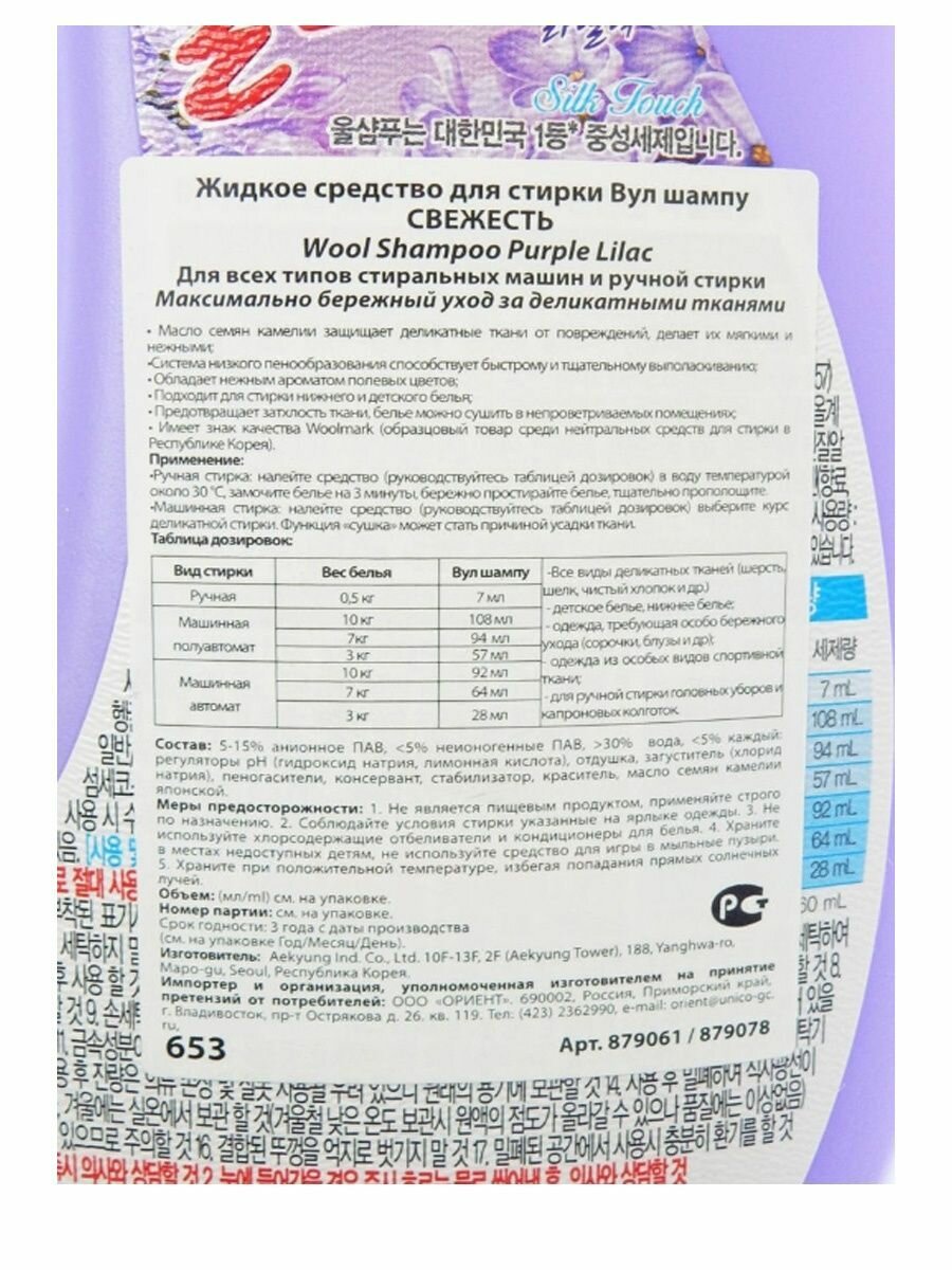 Купить Aekyung Жидкое средство для стирки Wool Shampoo / ВУЛ шампу свежесть, 1 л