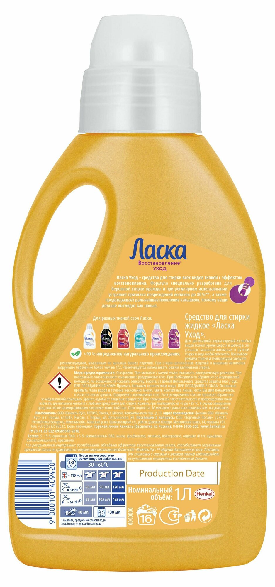 Гель для стирки Ласка, 1 л, Уход и восстановление