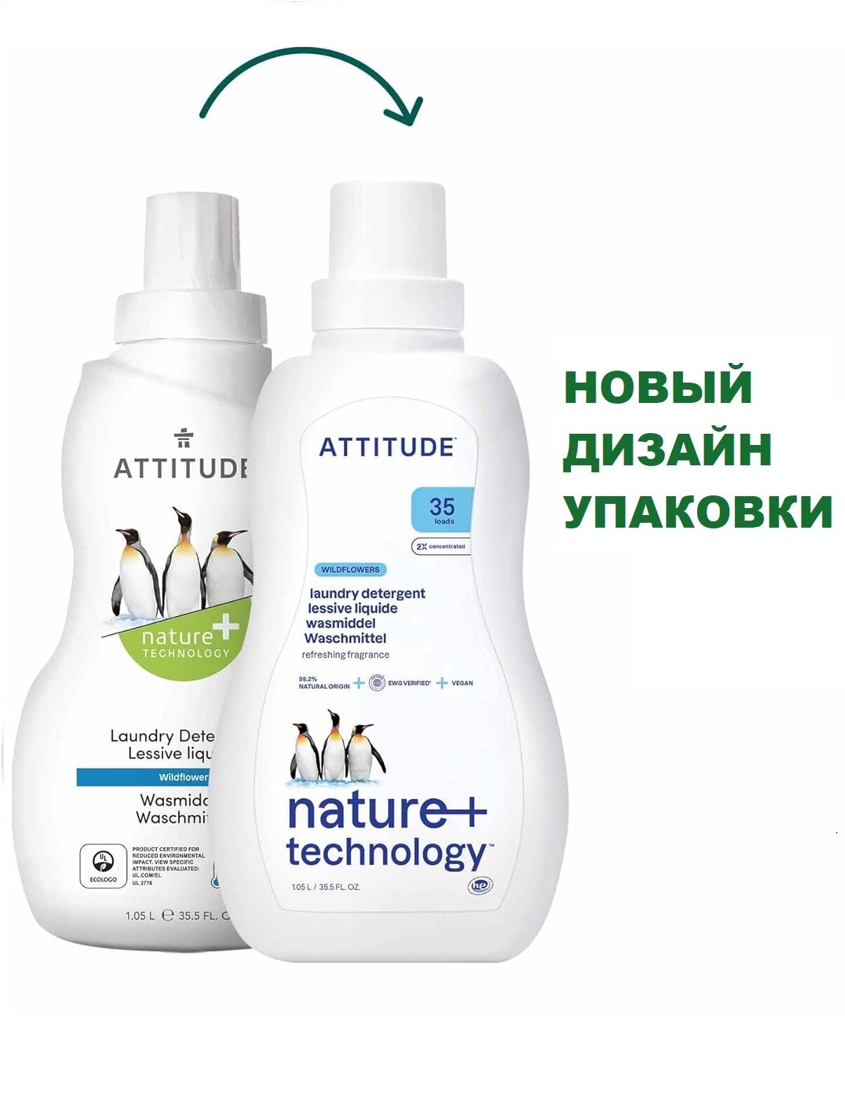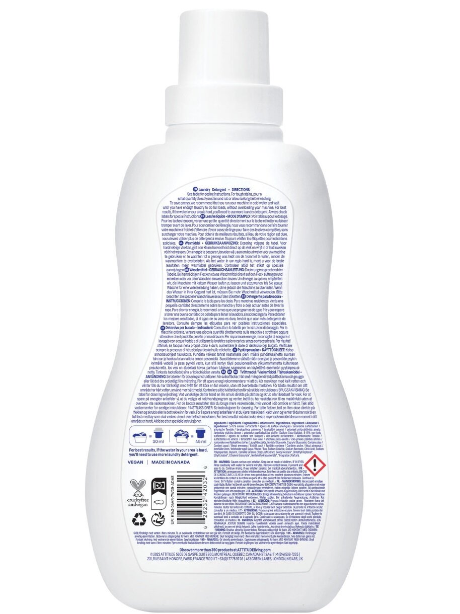 Эко Жидкость для стирки белья ATTITUDE гипоаллергенная, концентрат 1,05 л