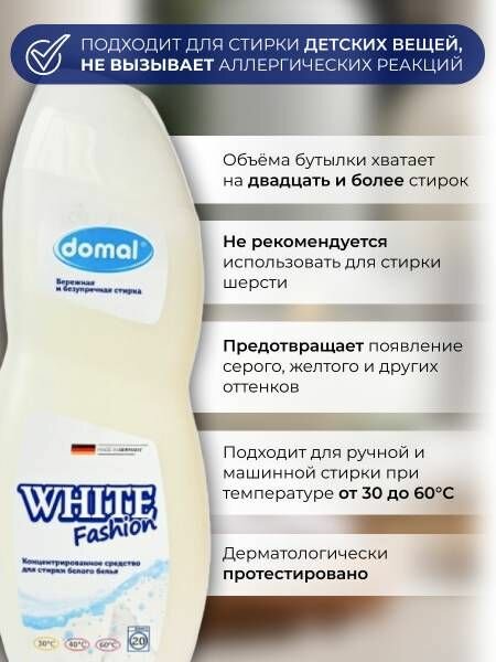 Купить Концентрированный бальзам для стирки белой одежды Domal White, 750 мл