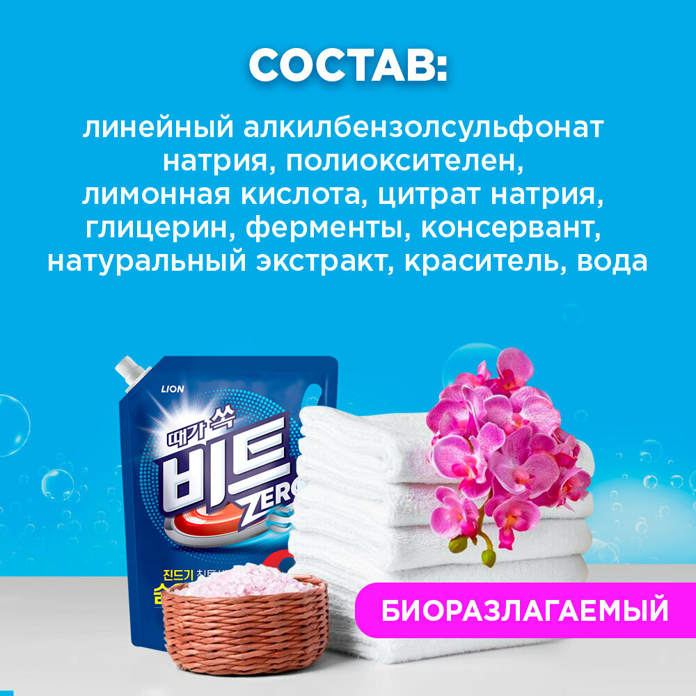 CJ Lion Жидкое средство "Beat" для ручной и автоматической стирки, мягкая упаковка, 2000 мл