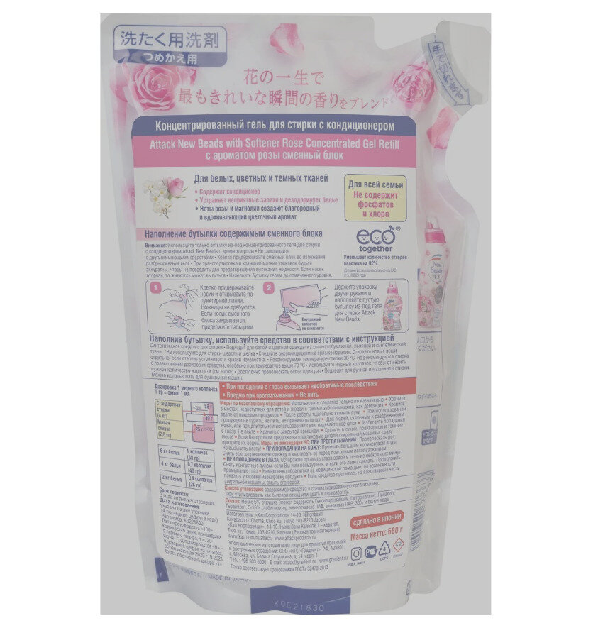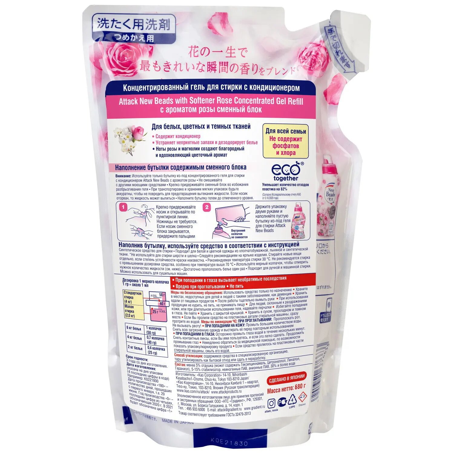 Гель для стирки Kao Attack New Beads Fragrance с ароматом роз, 0.68 л, 0.68 кг, дой-пак
