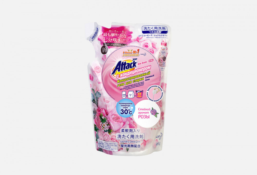 Купить Гель для стирки Attack New Beads Роза с кондиционером, концентрированный 680 г