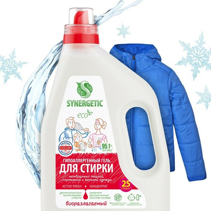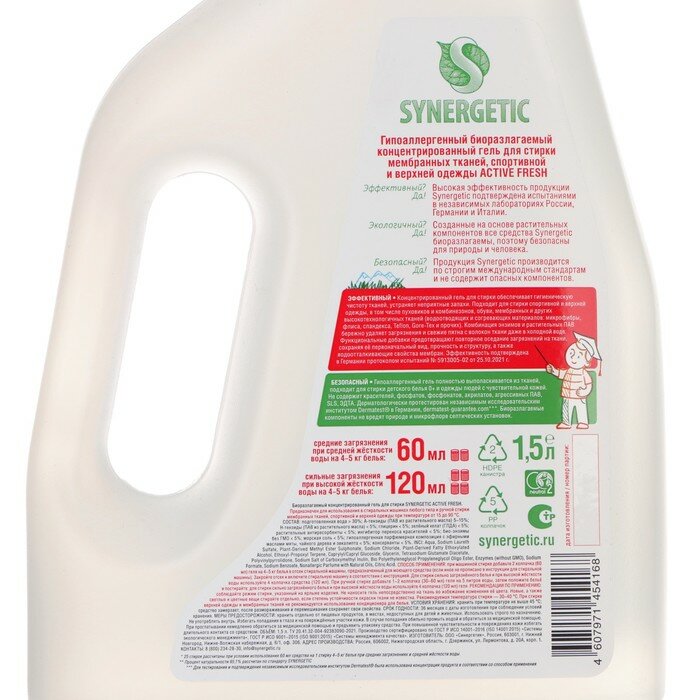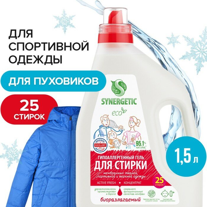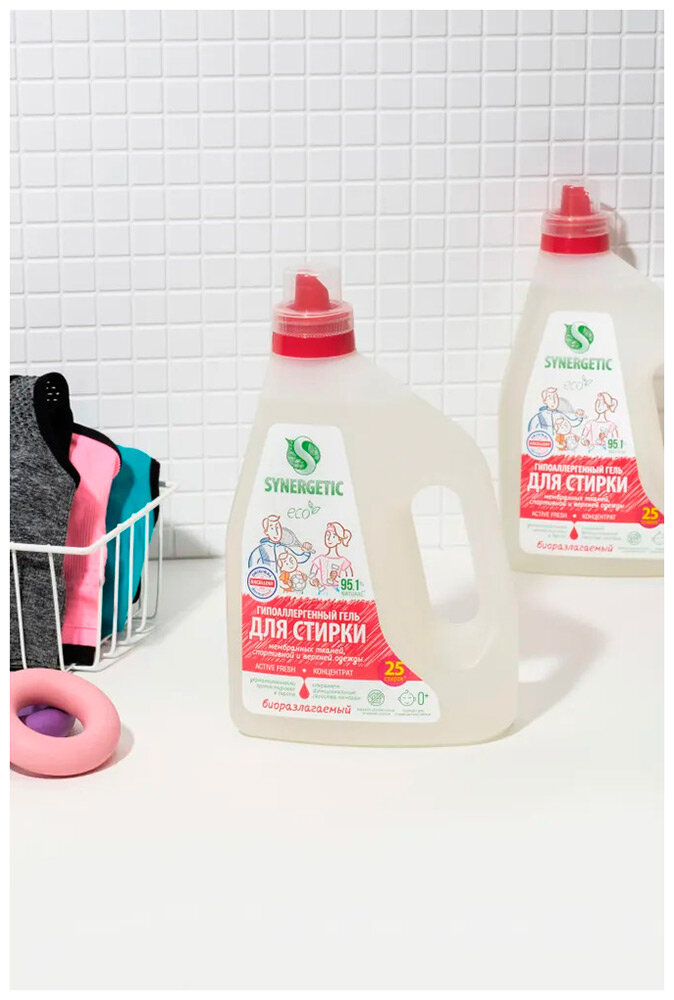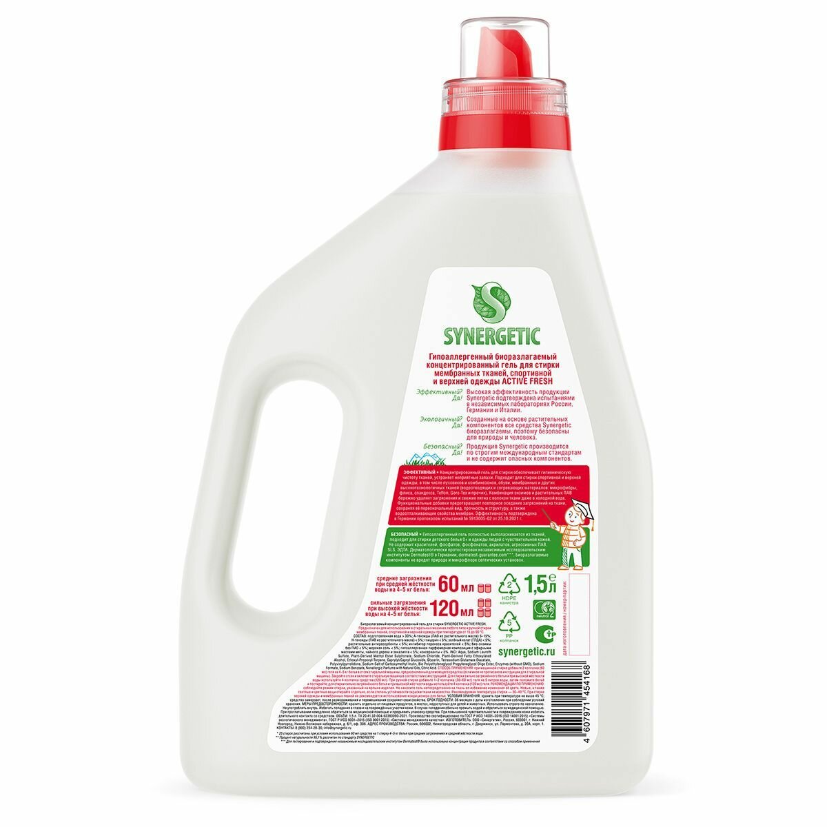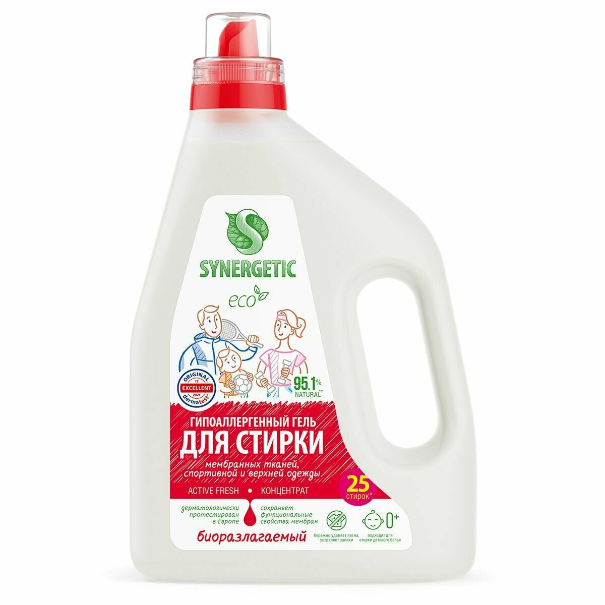 Купить Биоразлагаемый концентрированный гель для стирки SYNERGETIC ACTIVE FRESH, 1,5 л (25 стирок)
