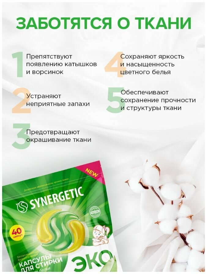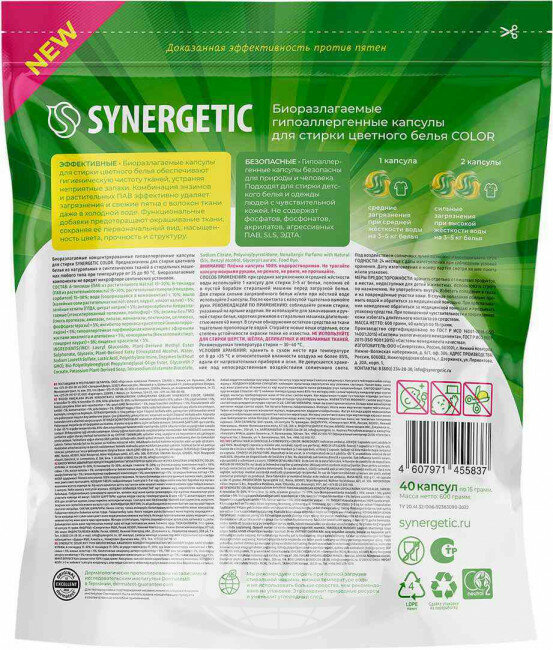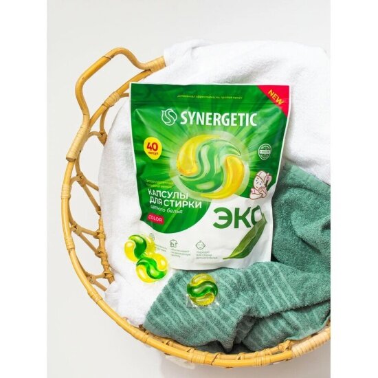 Купить Биоразлагаемые концентрированные гипоаллергенные капсулы для стирки SYNERGETIC COLOR (40 штук)