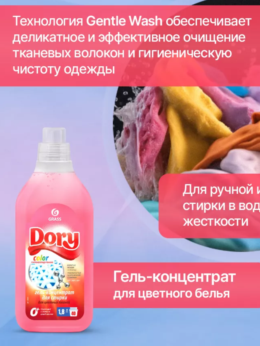 Купить GRASS DORY гель-концентрат для стирки Цветного белья 1,8л