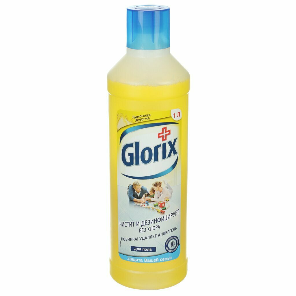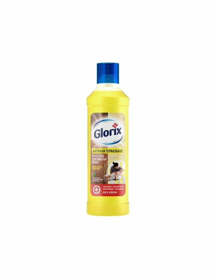 Средство для мытья пола дезинфицирующее 1 л GLORIX (Глорикс) "Лимонная Энергия", без хлора, 8677296