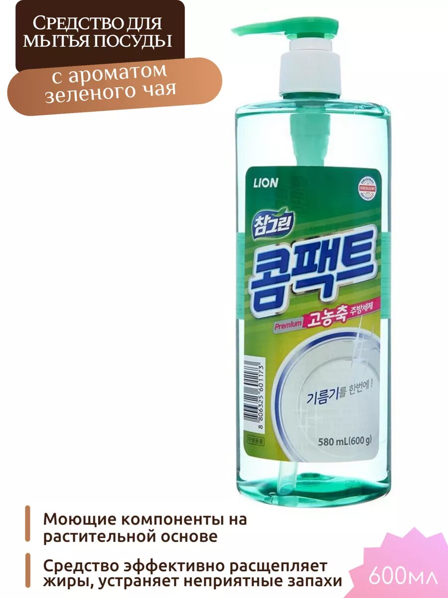 Купить Lion Средство для мытья посуды, овощей и фруктов с экстрактом зеленого чая с дозатором Корея, Charmgreen Green Tea, 580 мл