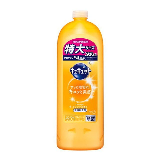 KAO CuCute Cредство для мытья посуды концентрированное антибактериальное аромат апельсина 770 мл сменная упаковка