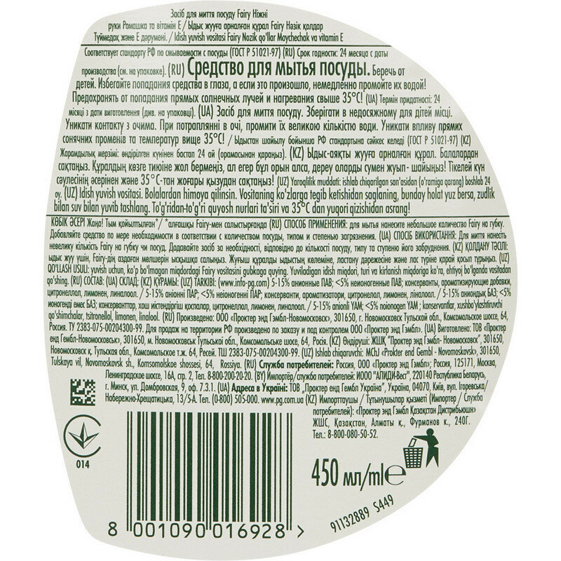 Средство для мытья посуды, 450 мл, FAIRY (Фейри) «Ромашка и витамин Е»