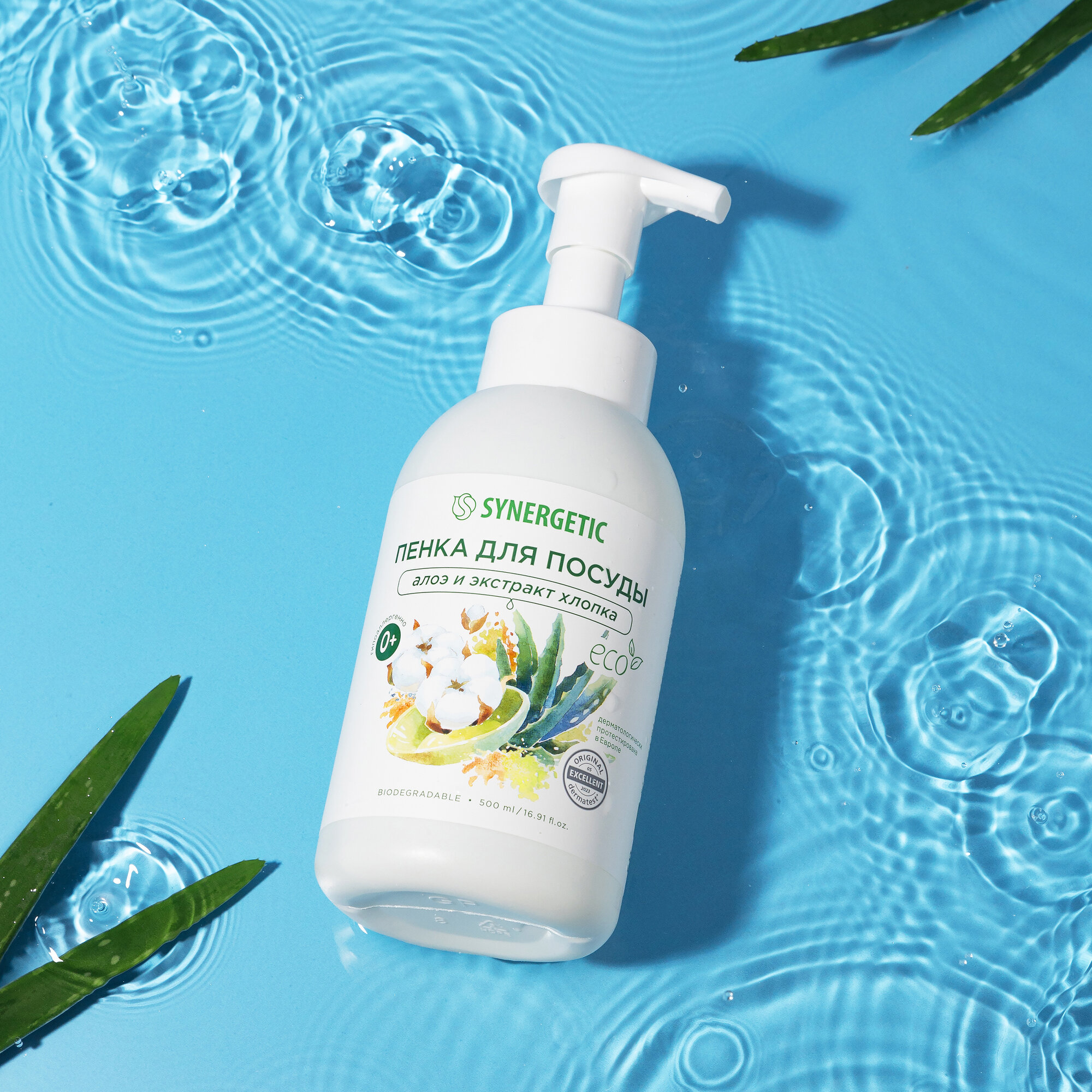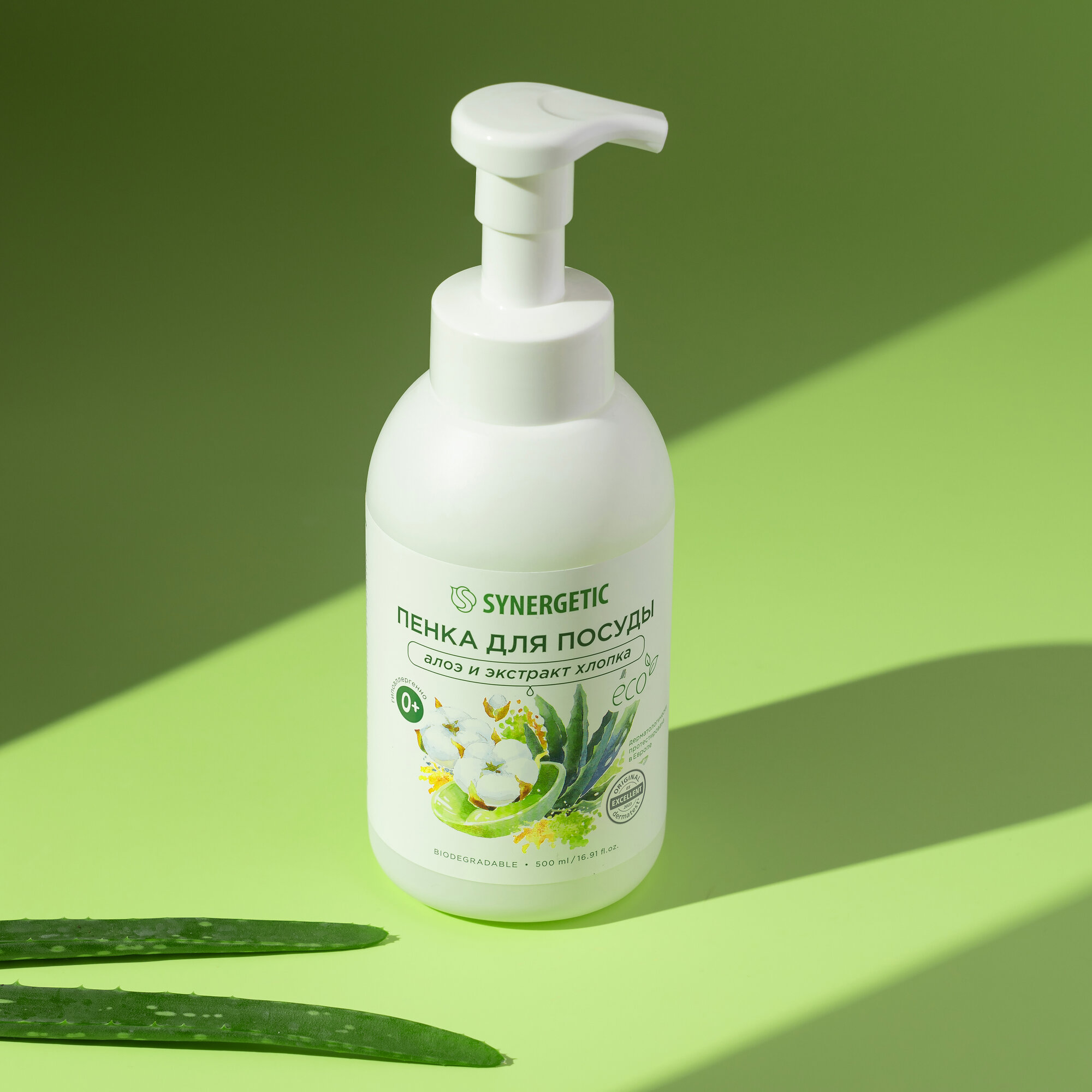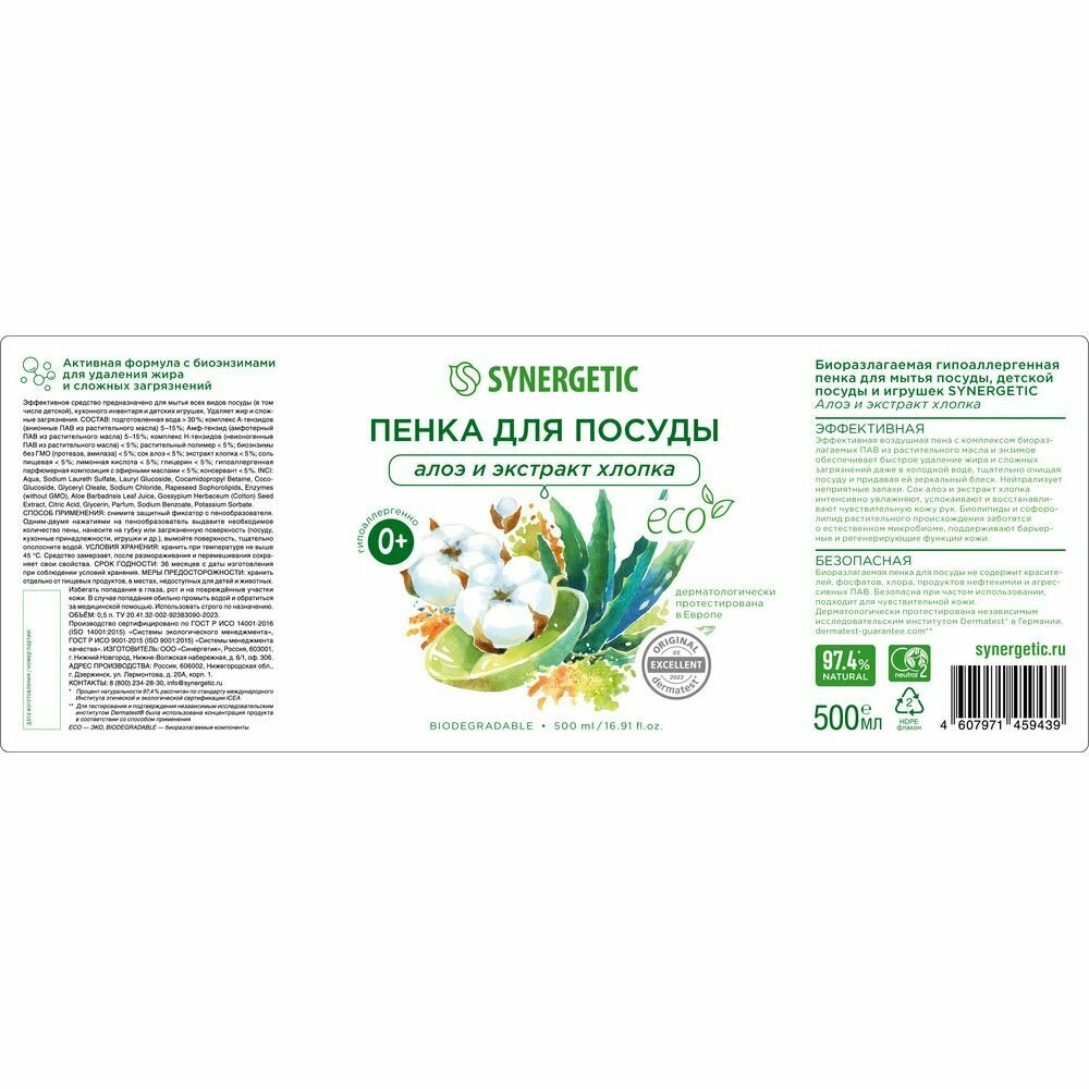 Биоразлагаемая гипоаллергенная пенка для мытья посуды, детской посуды, игрушек, бутылочек и сосок SYNERGETIC, 500 мл