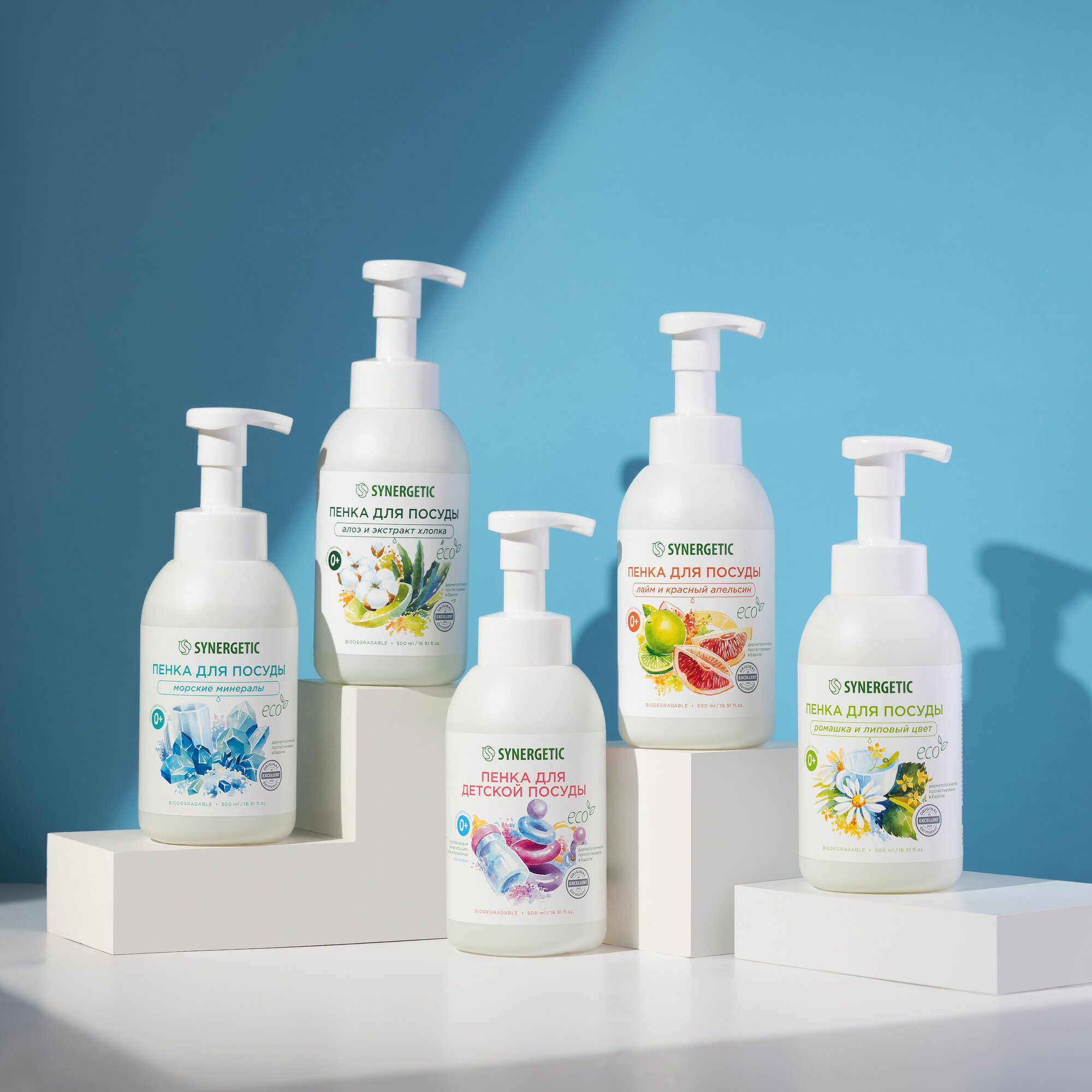 Биоразлагаемая гипоаллергенная пенка для мытья посуды, детской посуды и игрушек SYNERGETIC Морские минералы, 500 мл