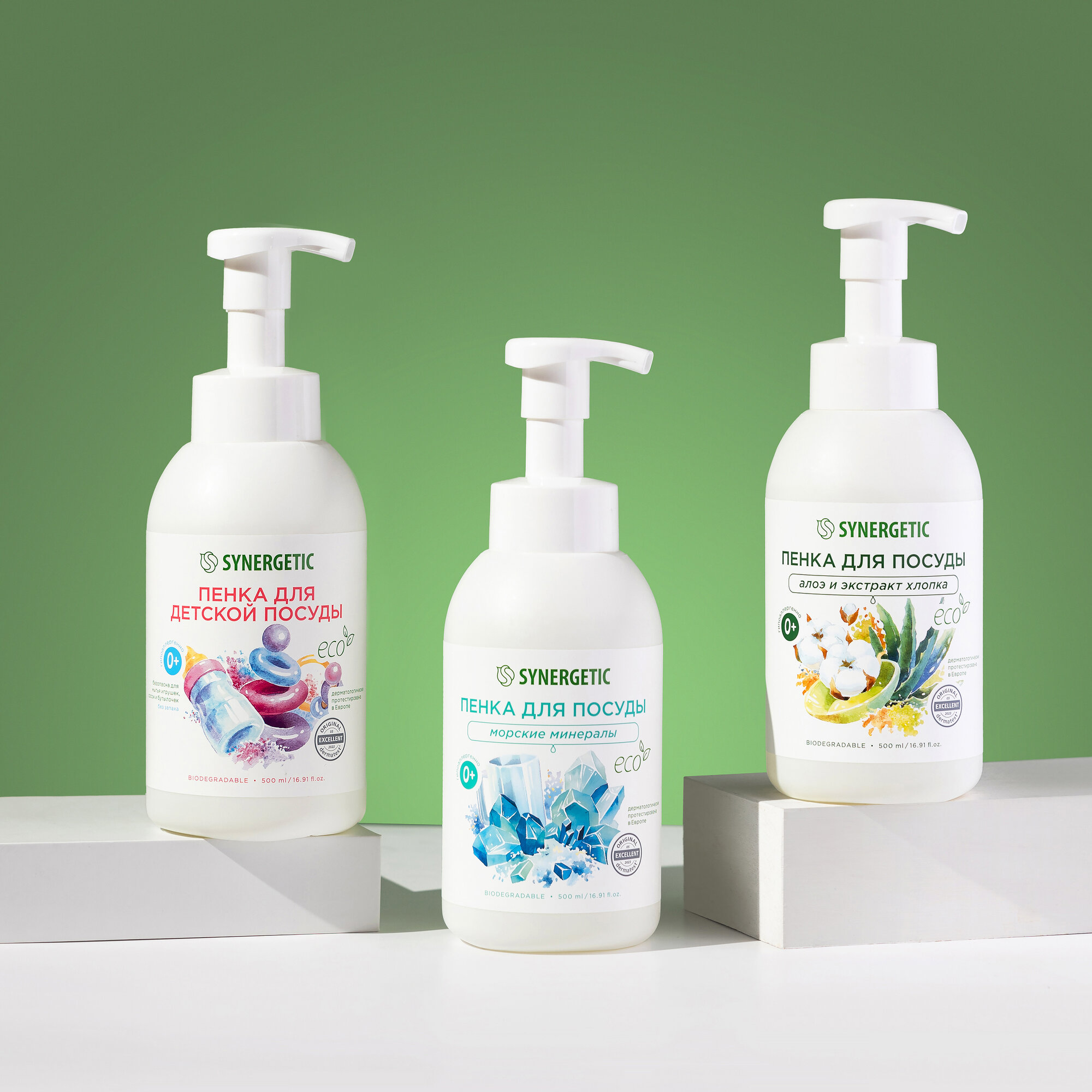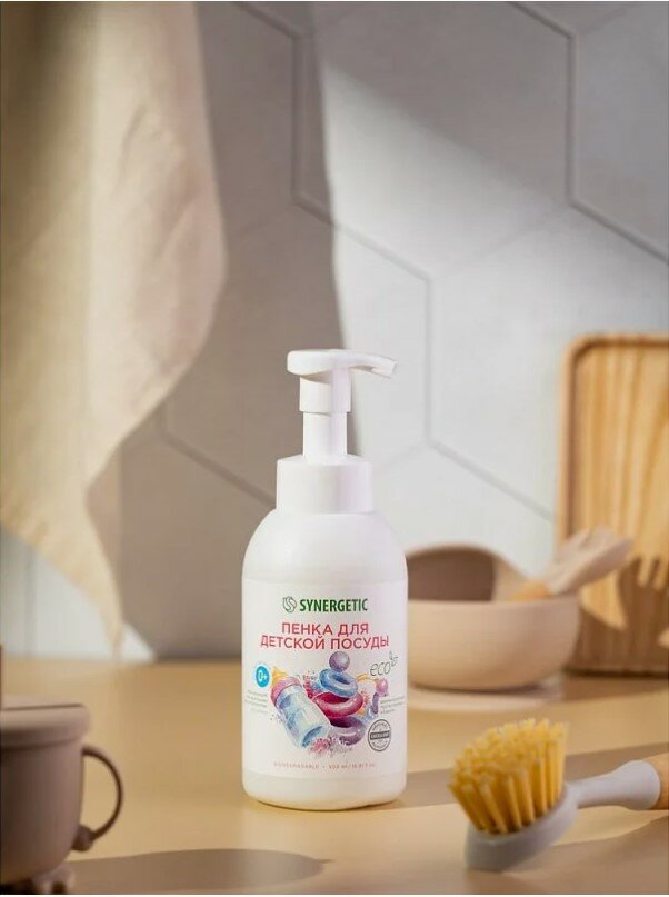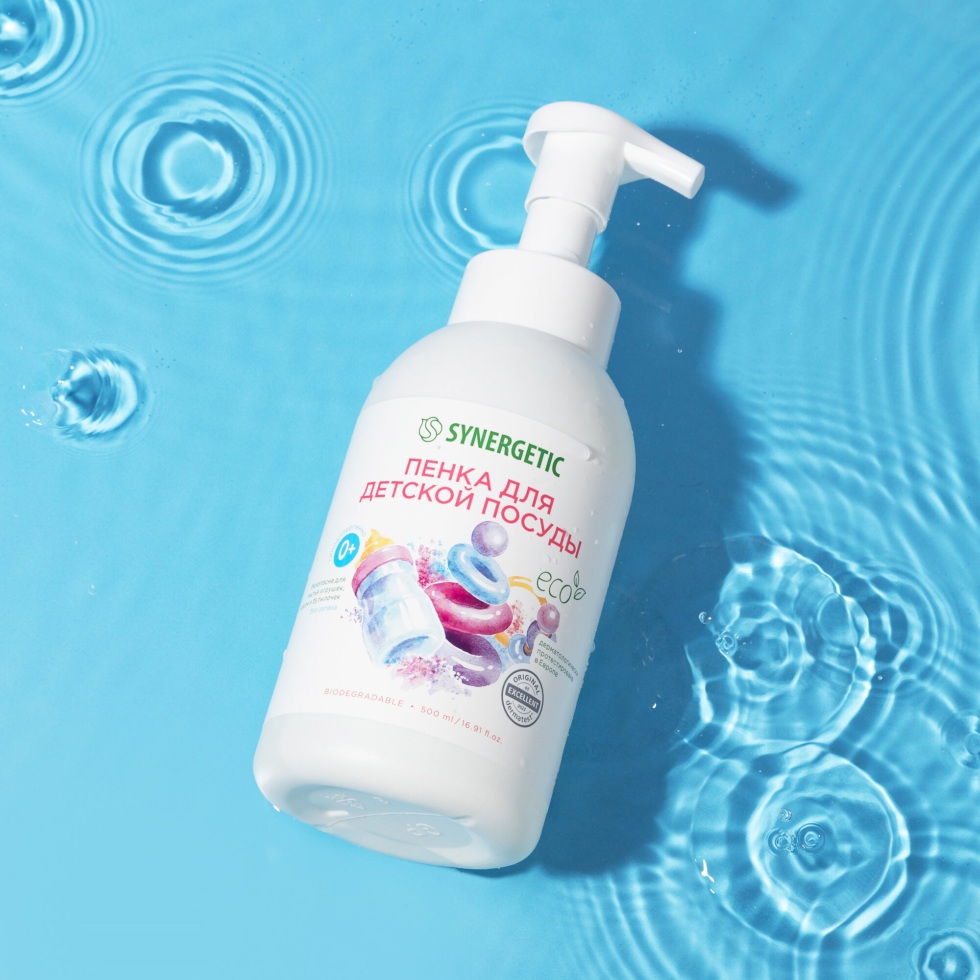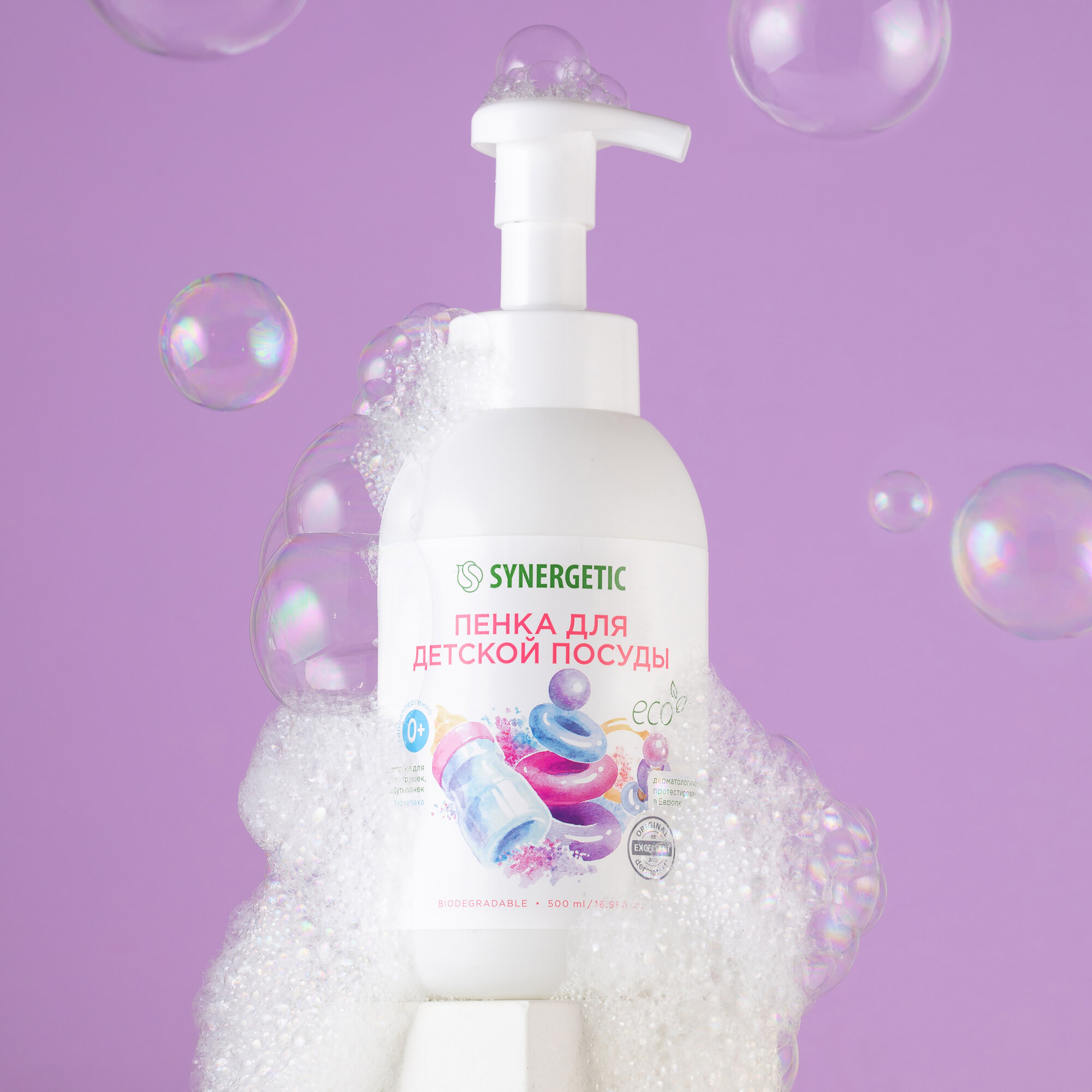 Купить Биоразлагаемая гипоаллергенная пенка для мытья посуды, детской посуды, игрушек, бутылочек и сосок SYNERGETIC, 500 мл