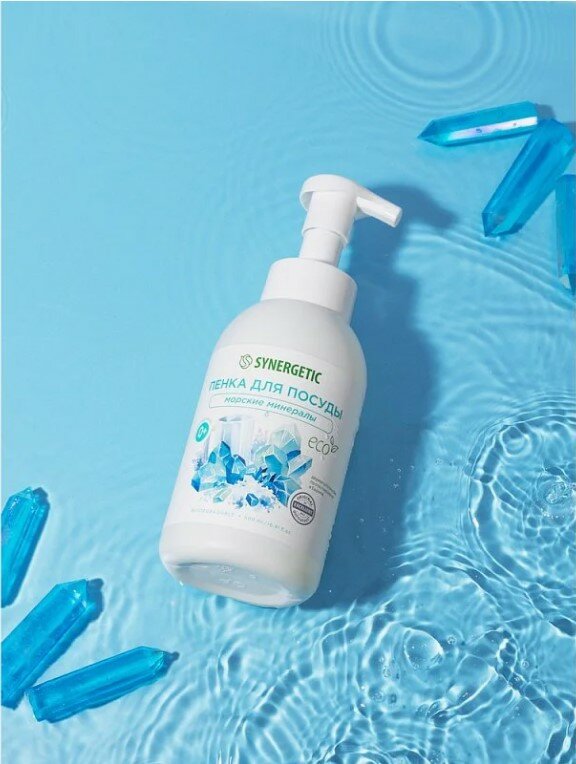 Купить Биоразлагаемая гипоаллергенная пенка для мытья посуды, детской посуды и игрушек SYNERGETIC Морские минералы, 500 мл