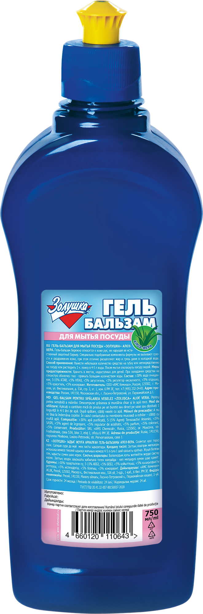 Золушка гель-бальзам для мытья посуды Алоэ-вера 750мл
