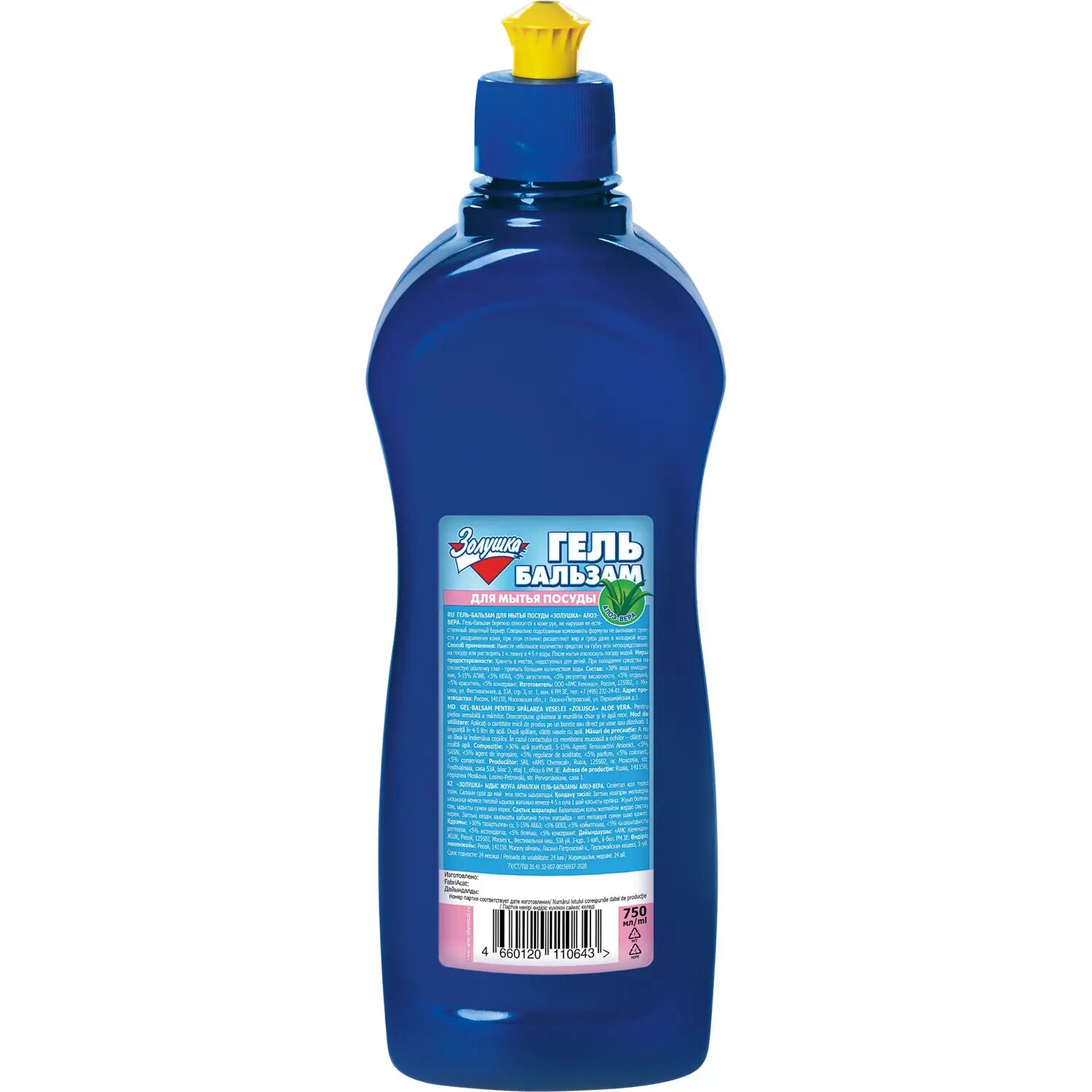 Золушка Гель-бальзам для посуды Алоэ Вера, 750 мл