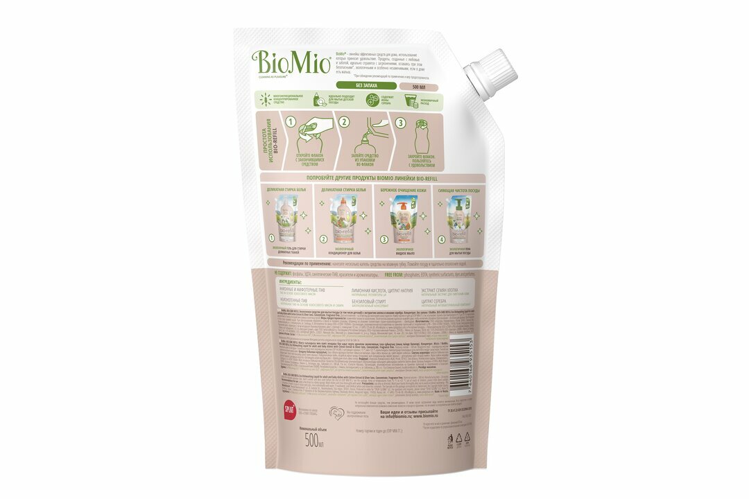 BioMio средство для мытья посуды без запаха сменный блок 500мл