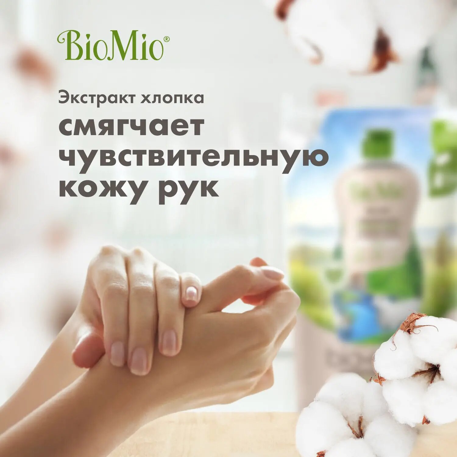 Экологичное средство для мытья посуды BioMio BIO-CARE REFILL с экстрактом хлопка и ионами серебра. Концентрат. Без запаха 500 мл.