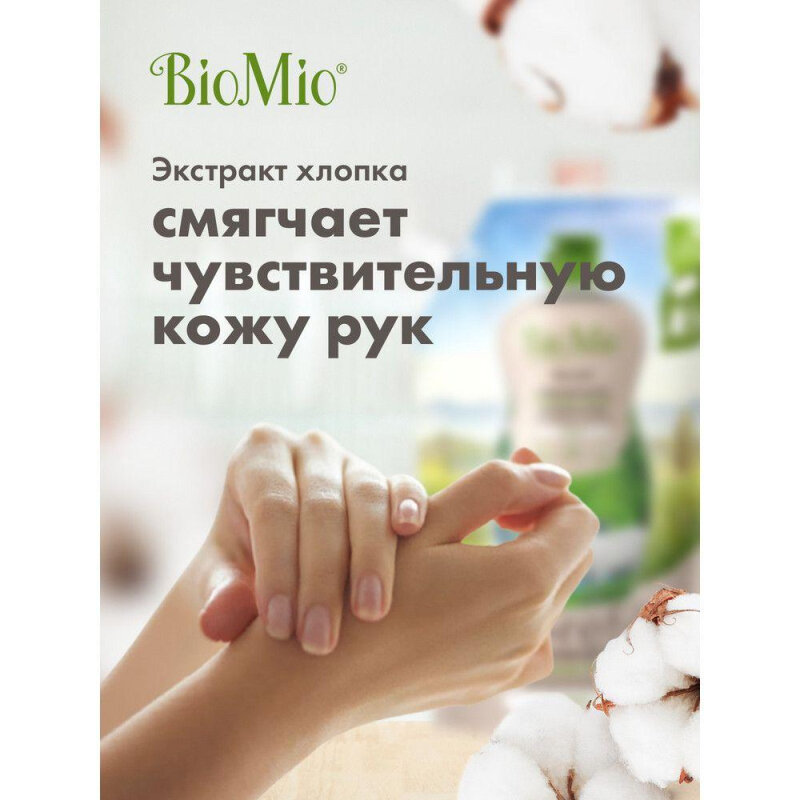 BioMio. BIO-CARE Экологичное средство для мытья посуды (в том числе детской), овощей и фруктов БиоМио. С экстрактом хлопка и ионами серебра. Концентрат. Без запаха / BioMio. BIO-CARE Eco Dish, Fruits and Vegetables Washing Liquid. For adult and baby dishe