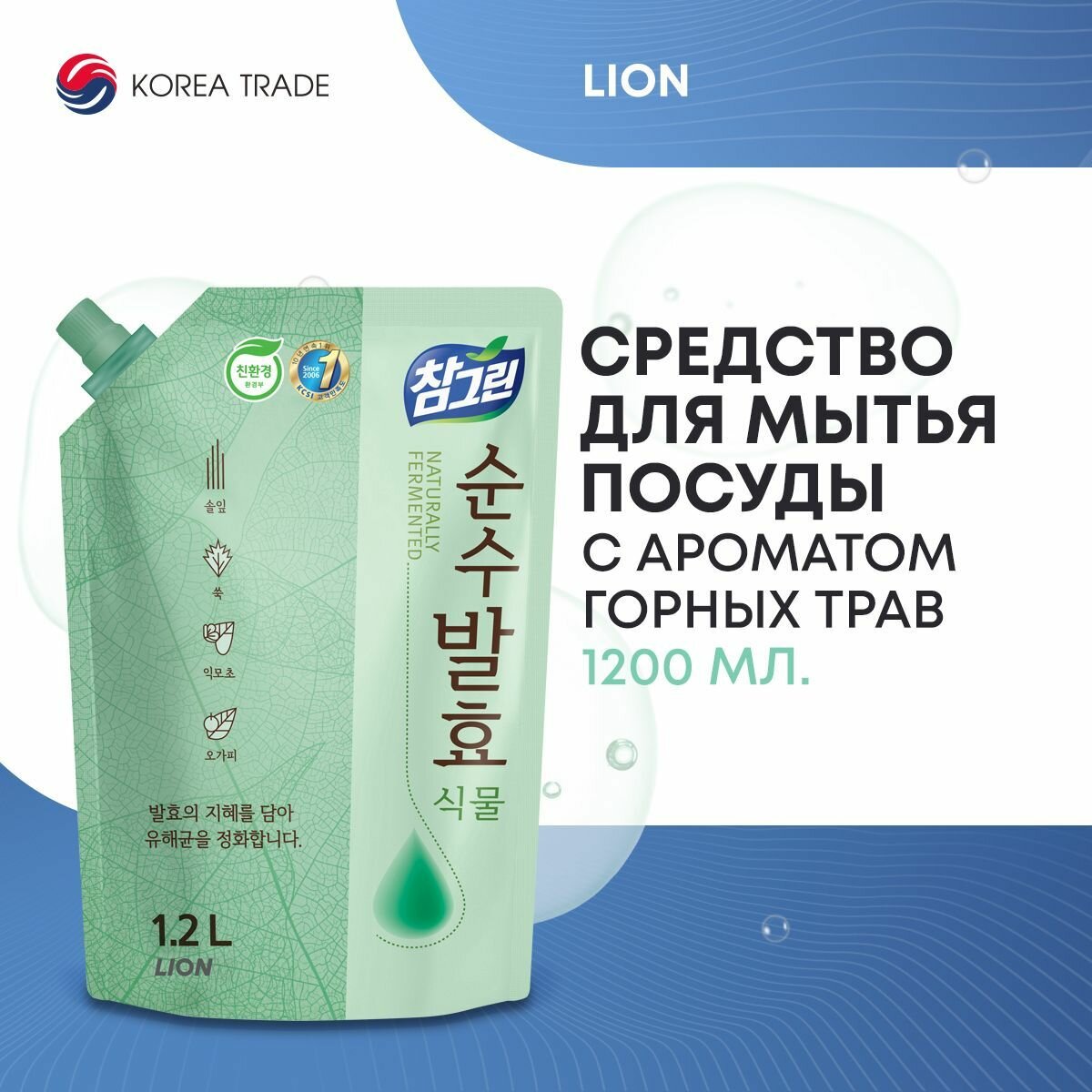 Купить Средство для мытья посуды Lion Chamgreen Pure Fermentation Горные травы, 1.2 л, мягкая упаковка